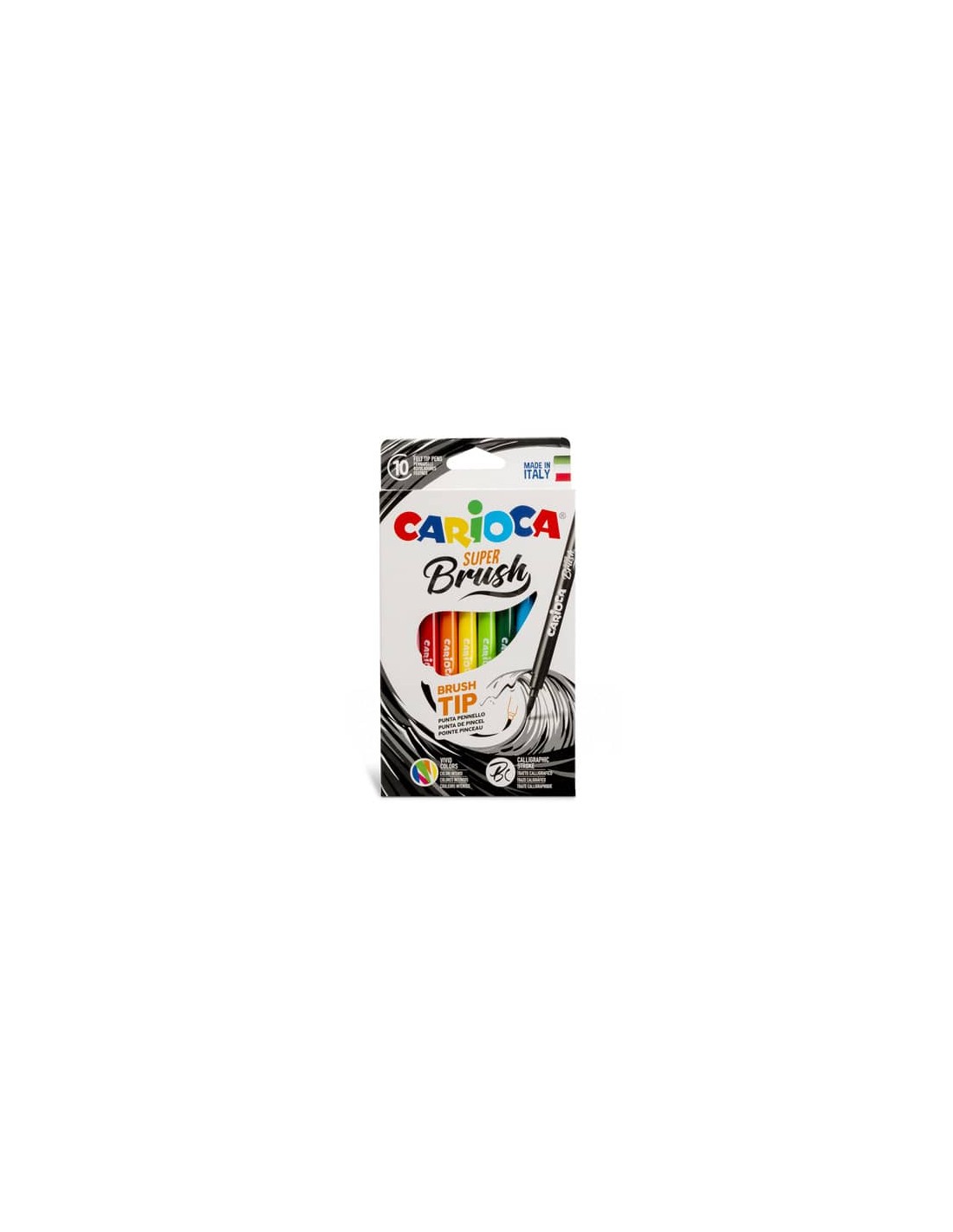 La scatola contiene 10 pennarelli Super Brush, dotati di una punta a pennello morbida e flessibile, ideale per chi cerca precisione e versatilità nel disegno. L’inchiostro lavabile permette di lavorare in tranquillità, mentre i colori super brillanti aggiungono un tocco vibrante a ogni creazione. Perfetti per disegni calligrafici, lettering creativo e illustrazioni, questi pennarelli offrono una combinazione di qualità e facilità d’uso per artisti di tutte le età. Colori assortiti.