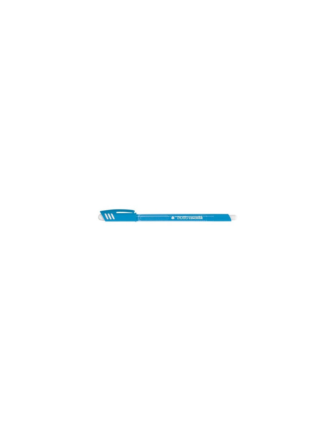 Penne a sfera cancellabili Tratto Cancellik. Gli errori hanno le ore contate. La linea Tratto Cancellik si caratterizza per due importanti fattori: la doppia gomma e il design innovativo del cappuccio, per renderla ancora più accattivante! Le gomme sono nel cappuccio e nel corpo della penna. L'inchiostro di Tratto Cancellik diventa permanente dopo circa 24 ore. La penna è dotata di cappuccio antisoffocamento che ne permette l'utilizzo in estrema sicurezza e di spazio per la personalizzazione del nome che permette di renderla riconoscibile. Colore azzurro.