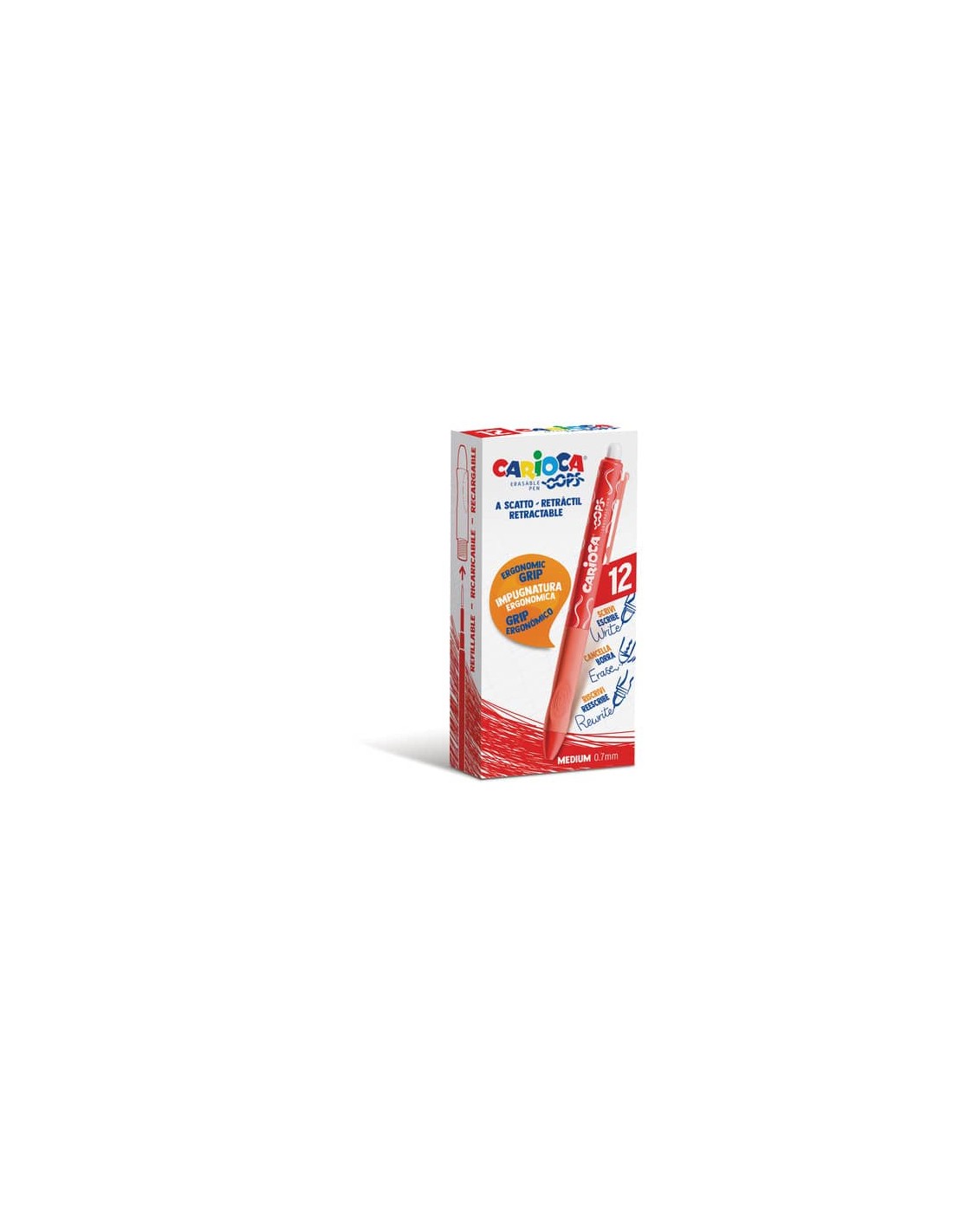 Penne a scatto cancellabili Carioca OOPS inchiostro termosensibile M 0,7 mm conf. da 12 rosso - 43043/03