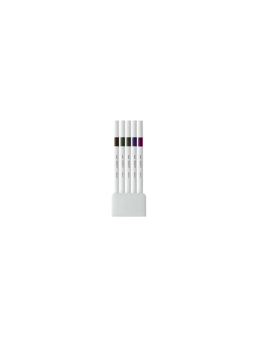 Fineliner dal design innovativo. Il suo fusto bianco raffinato e l'indicatore di colore sono in perfetto equilibrio e lasciano inalterata l'immagine di eleganza di Emott. Forma del fusto quadrata con bordi arrotondati che consente una facile presa e una sensazione di comfort durante la scrittura. La punta è durevole e dotata di un rivestimento esterno che conferisce massima resistenza e lunga durata mantendo inalterato lo spessore sottile del tratto. Inchiostro pigmentato a base d’acqua che resiste all'acqua e alla luce. Punta 0,4 mm. Astuccio 5 colori assortiti. Colori calmi e profondi.