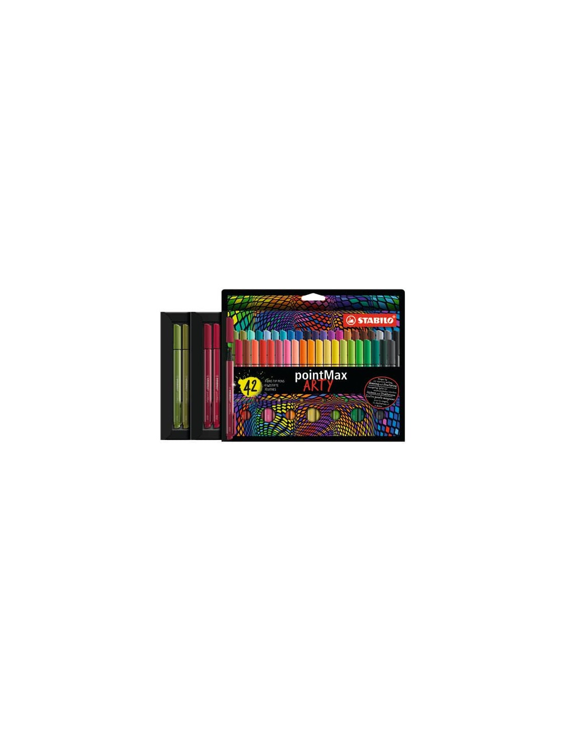 Pennarelli Stabilo PointMax Fineliner Premium con punta nylon ''L'' da 0.8 mm. Resiste fino a 24 ore senza cappuccio. Inchiostro inodore a base d'acqua. Dotato di comoda clip. Astuccio appendibile con 42 colori: 488-5 - giallo chiaro, 488/7 - corallo, 488/11 - blu ghiaccio, 488/13 - verde ghiaccio, 488/14 - lime, 488/19 - porpora, 488/22 - blu di Prussia, 488/24 - giallo limone, 488/26 - albicocca, 488/29 - rosa chiaro, 488/30 - vermiglio pallido, 488/31 - azzurro chiaro, 488/32 - blu oltremare, 488/33 - verde chiaro, 488/35 - verde mimetico, 488/36 - verde, 488/37 - verde muschio, 488/38 - sanguigna, 488/40 - rosso, 488/41 - blu scuro, 488/43 - verde foglia, 488/44 - giallo, 488/45 - bruno, 488/46 - nero, 488/48 - carminio, 488/49 - rosso fragola, 488/50 - rosso scuro, 488/51 turchese, 488/53 - verde pino, 488/54 - arancione, 488/55 - viola, 488/56 - rosa, 488/57 - azzurro, 488/58 - lilla, 488/63 - verde terra, 488/65 - terra d'ombra, 488/75 - terra di siena bruciato, 488/89 - ocra scuro, 488/94 - grigio freddo chiaro, 488/96 - grigio scuro, 488/97 - grigio nerastro, 488/98 - grigio di payne.