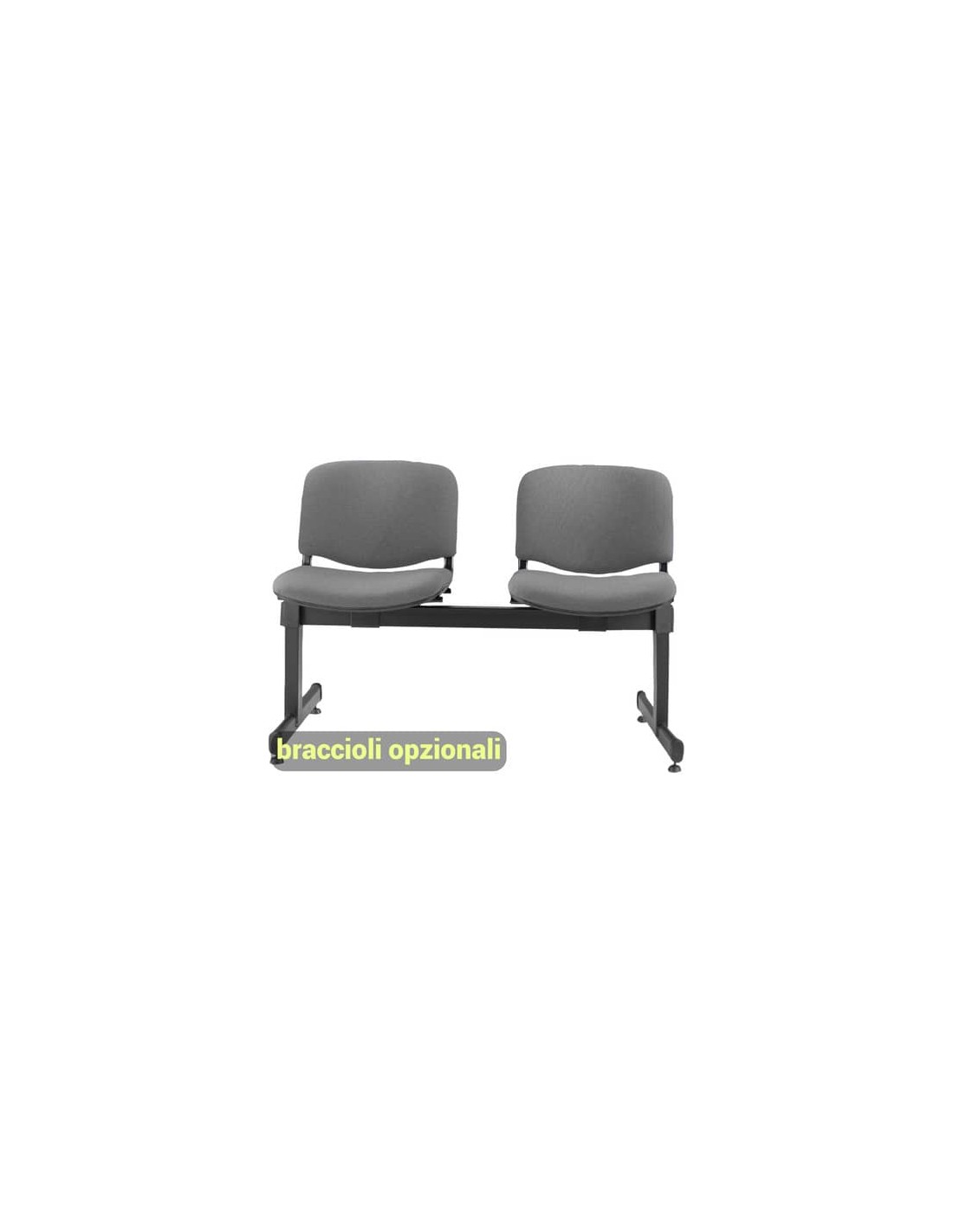 Panca a due posti collettività-attesa Dado D52P, struttura in acciaio nero, Braccioli opzionali (codici 110073, 110078), a schienale fisso. Dado è una linea veramente multipurpose, che presenta ogni soluzione per i più svariati utilizzi