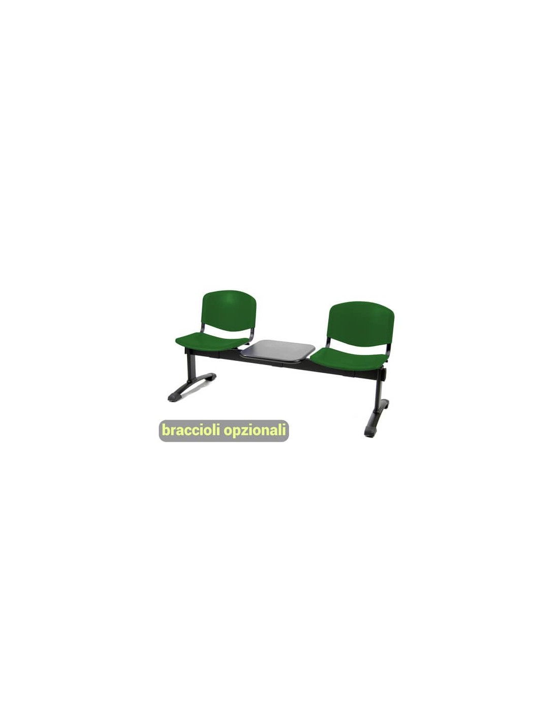 Panca a due posti con tavolino collettività-attesa Dado D52PT, struttura in acciaio nero, Braccioli opzionali (codici 110073, 110078), a schienale fisso. Dado è una linea veramente multipurpose, che presenta ogni soluzione per i più svariati utilizzi
