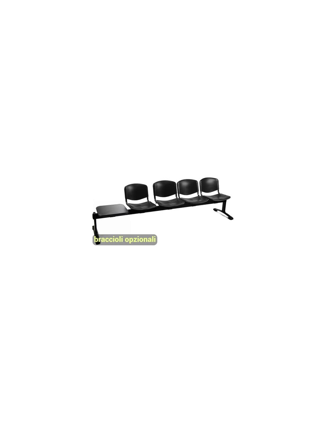 Panca a 4 posti collettività-attesa con tavolino Dado D54PT, struttura in acciaio nero, Braccioli opzionali (codici 110073, 110078), a schienale fisso. Dado è una linea veramente multipurpose, che presenta ogni soluzione per i più svariati utilizzi