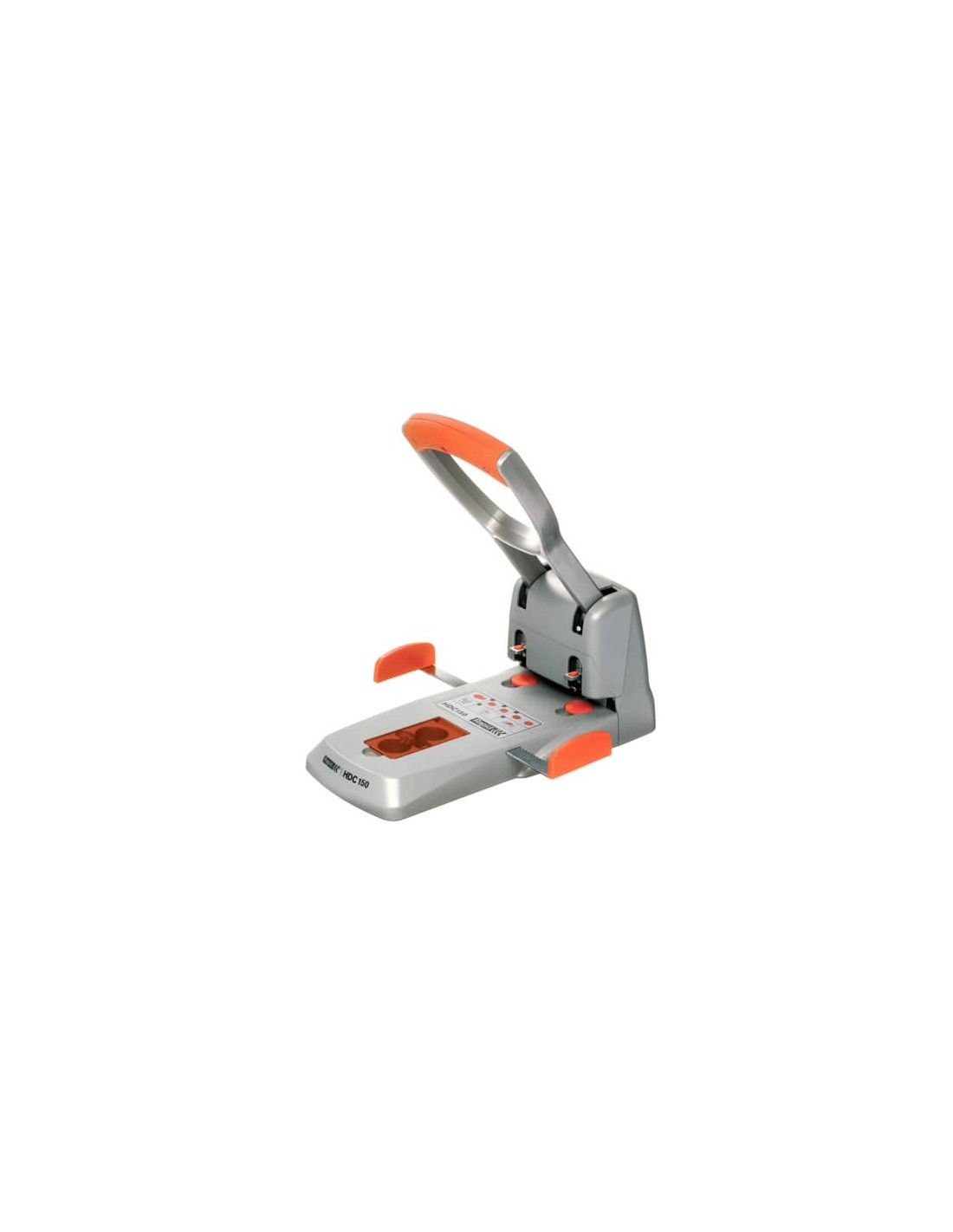 Perforatore che riduce lo sforzo di perforazione, con impugnatura ergonomica in gomma a presa comoda. Il perforatore Rapid HDC150 è compatto e ha una capacità di perforazione da 2 a 150 fogli. Confezione in box. Colore: grigio/arancio.