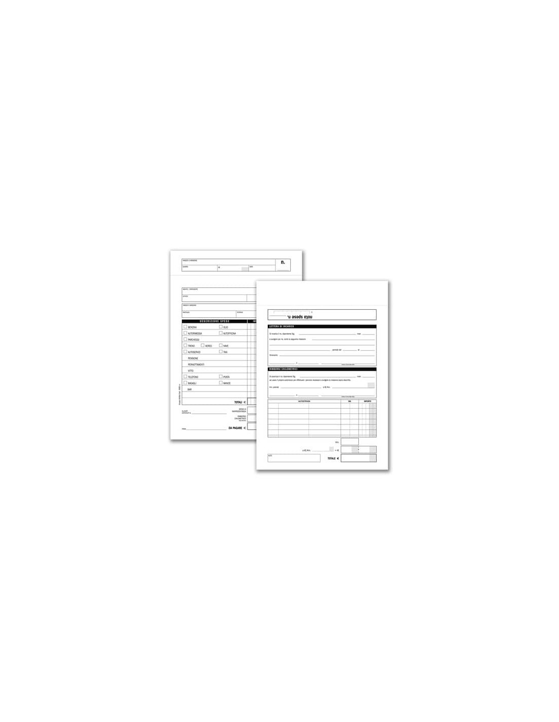 Buste-Nota spese da rimborsare con voci prestampate, blocco di 25 buste staccabili. Formato 28x15 cm