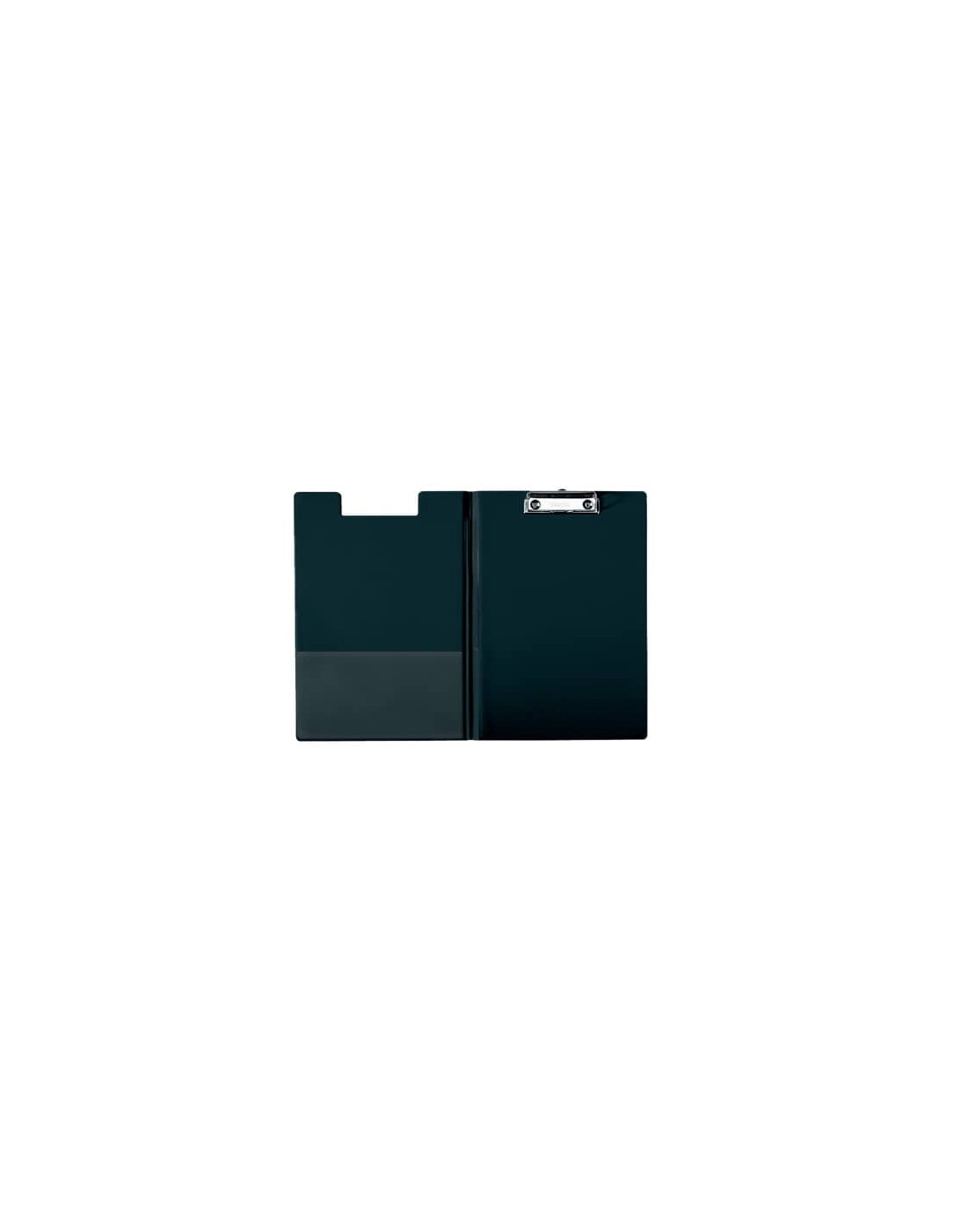 Portablocco con copertina, tasca interna e molletta di fissaggio. Cartoncino rivestito con polipropilene. Formato A4. Colore: nero.