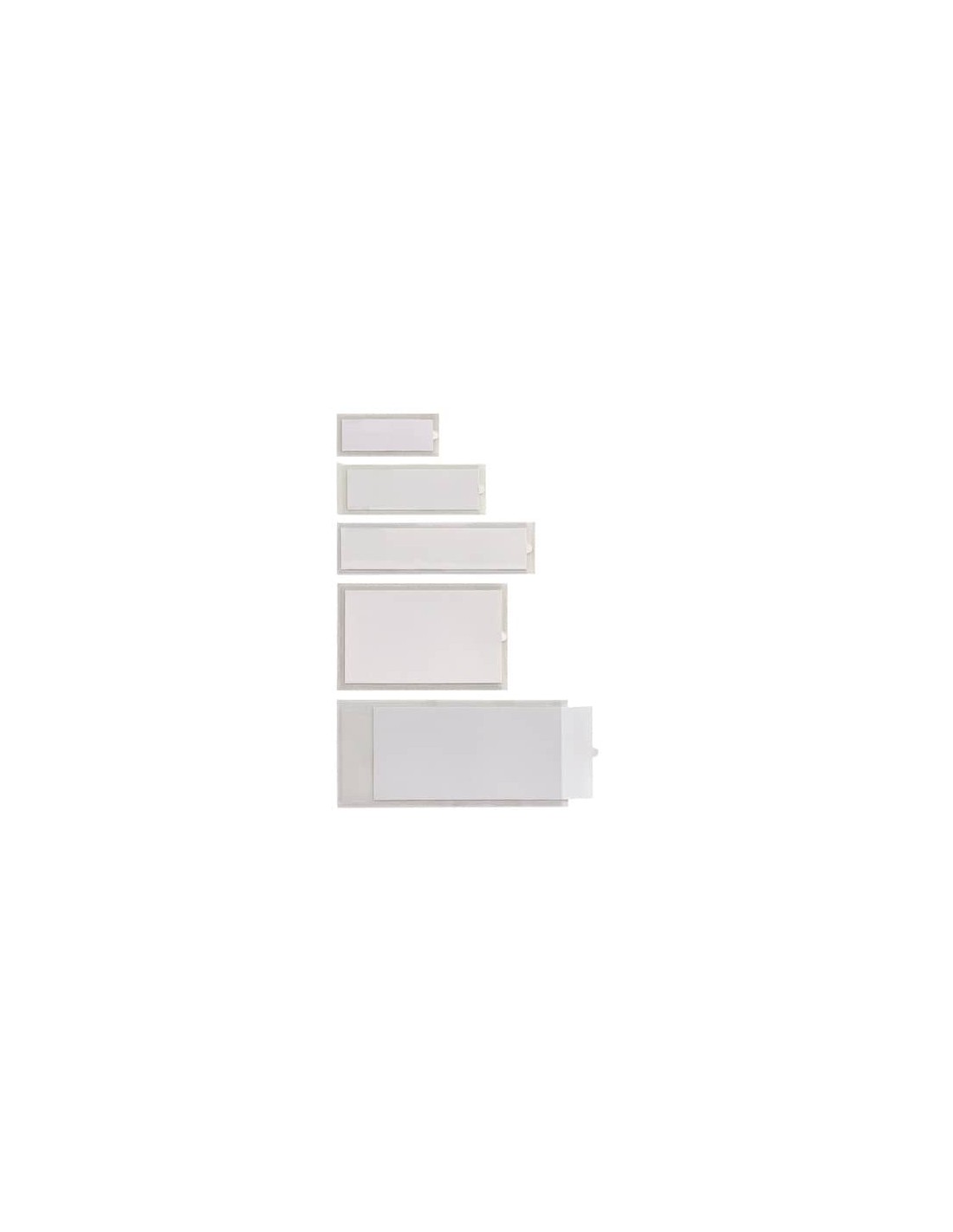 Porta etichette autoadesive in PVC trasparente. Facili da applicare su cassetti, ripiani, scatole, raccoglitori, valige, barattoli e bottiglie. Per etichettare tutto in modo trasparente.