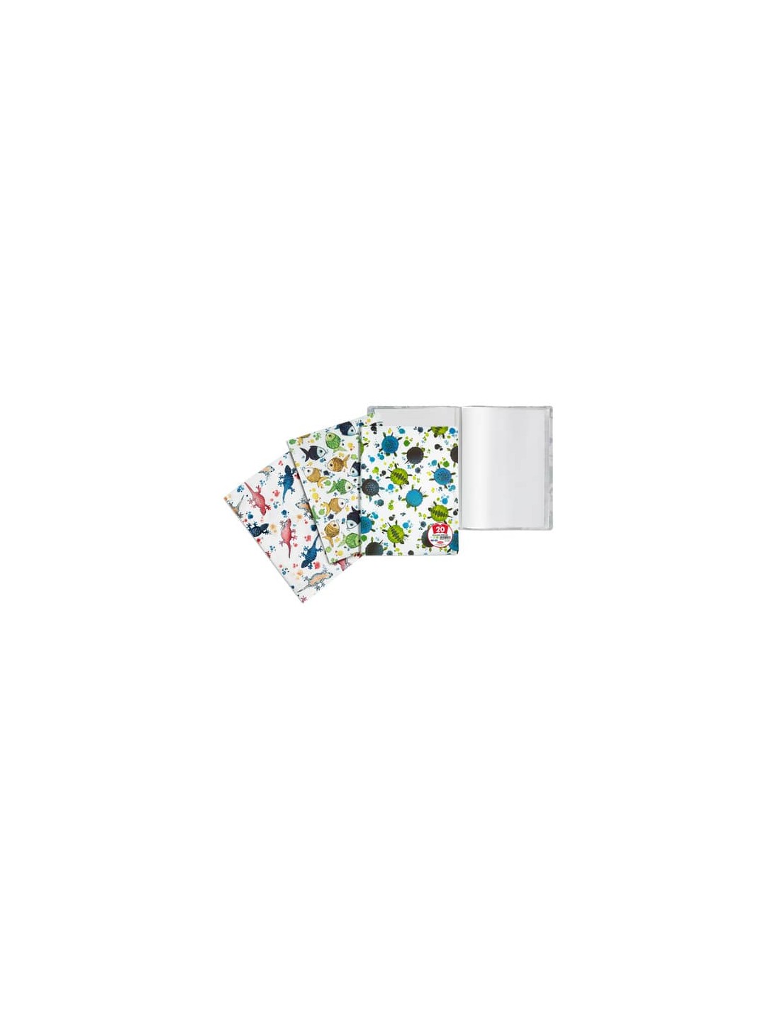 Portalistini in polipropilene lucido da 20 fogli. Realizzati con copertina grafica flessibile. Buste in PP liscio. Interamente riciclabili. Disponibili in 3 diversi soggetti. Formato 22 x 30 cm.