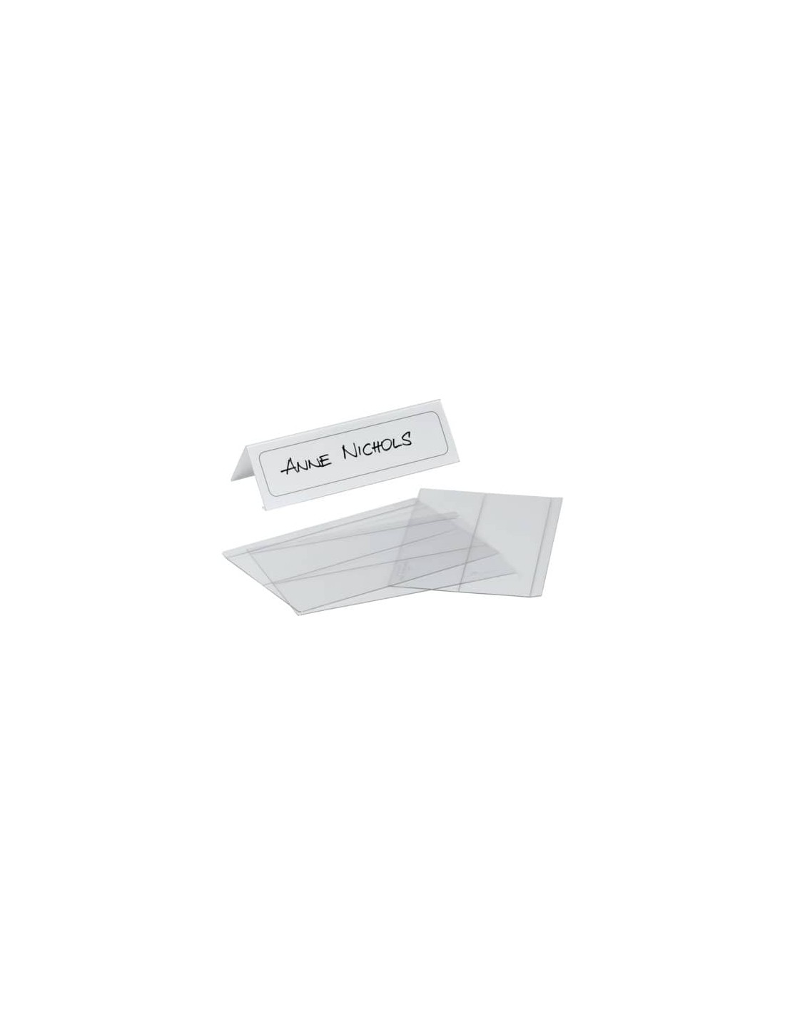 Segnaposto da tavolo in polietilene con cartoncino bianco incluso nella confezione. Forniti piatti e facilmente ricomponibili ripiegando seguendo le linee incise.