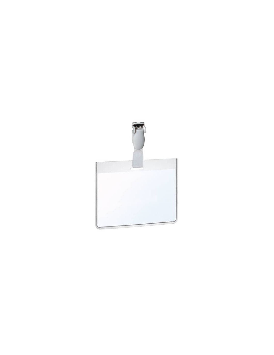 Portanome dotato di clip orientabile in plastica, con dentellatura in plastica salva tessuto. Con tasca chiusa. Cartoncino incluso personalizzabile tramite software gratuito online DURAPRINT®.