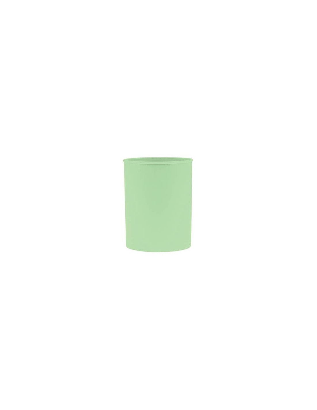 Portapenne in polipropilene rotondo verde pastello. Diametro: 7,5 cm. Altezza: 9,5 cm. 100% riciclabile. Appositamente progettato per uso scolastico. Certificato secondo la norma EN 71.