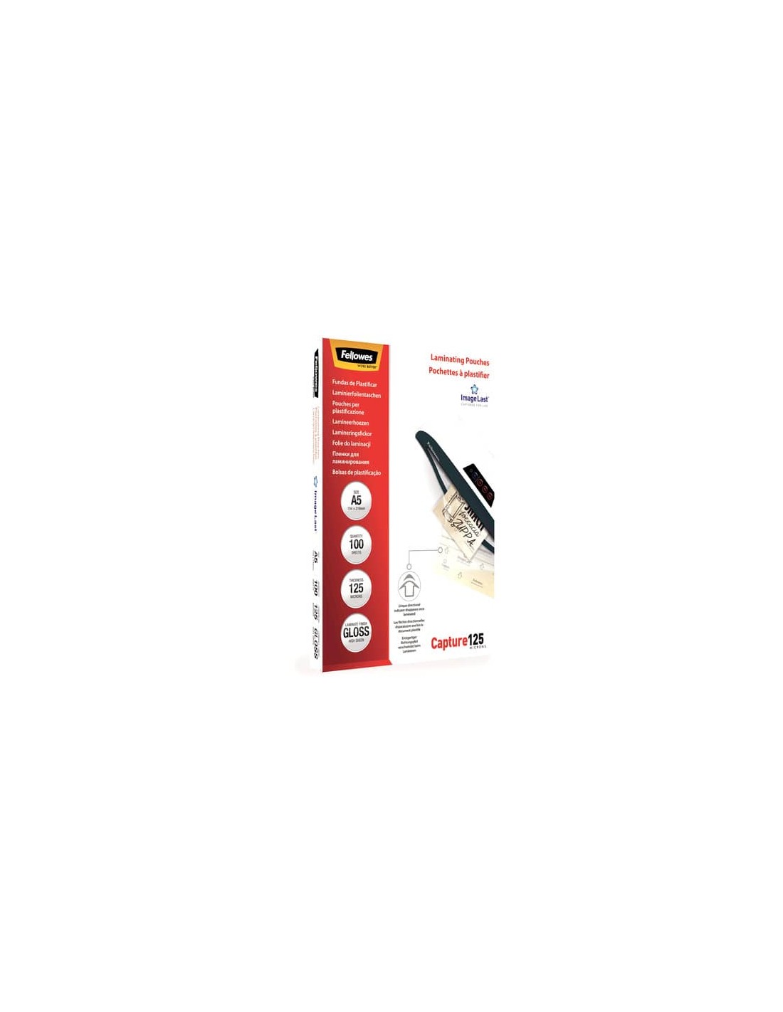 Pouches per plastificazione ImageLast di prima qualità per risultati di plastificazione superiori ogni volta. L'esclusivo logo a freccia indica il verso di inserimento e scompare durante la plastificazione. Ideali per avvisi, foto, istruzioni e documenti maneggiati con frequenza. Spessore 125 micron. Finitura lucida. Formato A5. Confezione da 100 pezzi. Compatibili con tutte le marche più diffuse di plastificatrici.