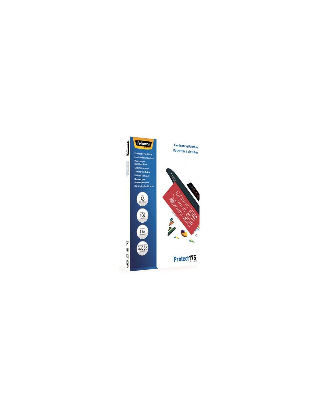 Pouches per plastificatrici Protect 175 Micron, garantiscono un livello avanzato di protezione del documento. Ideali per menù, avvisi, segnali, materiale educativo e documenti maneggiati frequentemente. Pouches lucide formato A3.