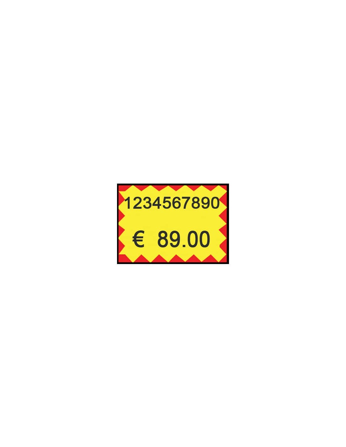Etichette permanenti per prezzatrici formato 26x19 mm giallo rettangolare con stampa " gialla contorno flash" - rotolo da 600 etichette - blister 10 rotoli.