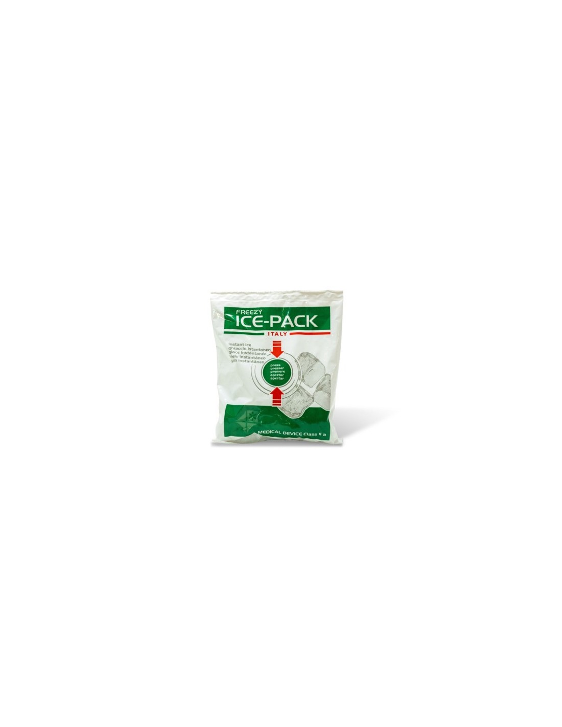 Ghiaccio istantaneo monouso realizzato in materiale plastico. Mantiene fredda la parte lesa per circa 25/30 minuti in funzione della temperatura esterna. Accessorio utile da usare in caso di traumi o piccole emorragie. Fornito in sacchetti di materiale plastico TNT, monouso. Dimensioni (L x P): 130 x 170 mm.