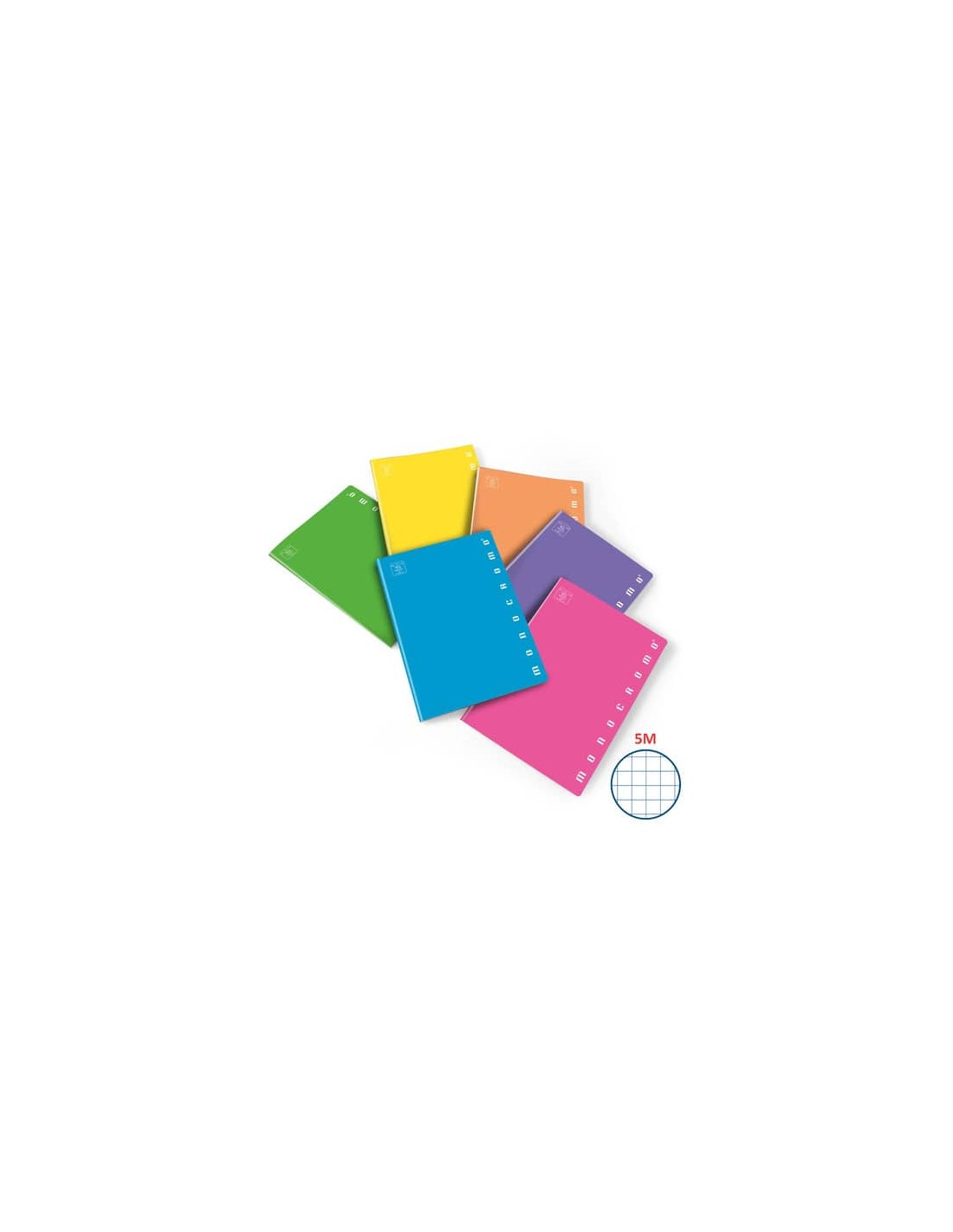 Quaderni A4 Monocromo Fluo 42ff/sh. Prodotto certificato FSC. Copertina da 250 g/mq. Grammatura: 80 g/mq. Rigatura: quadretti 5M. Colore copertina: assortiti.