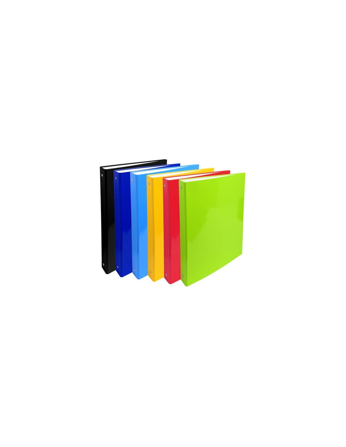 Raccoglitore Exacompta rivestito con carta plastificata. Interno in carta bianca. 4 anelli diametro 30 mm. Confezione da 24 colori assortiti.