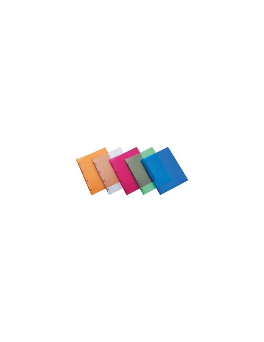 Raccoglitore realizzato in ppl con finitura zigrinata esterna e traslucida interno. Copertina trasparente e flessibile a 4 anelli ideale per documenti in A4. colore trasparente
