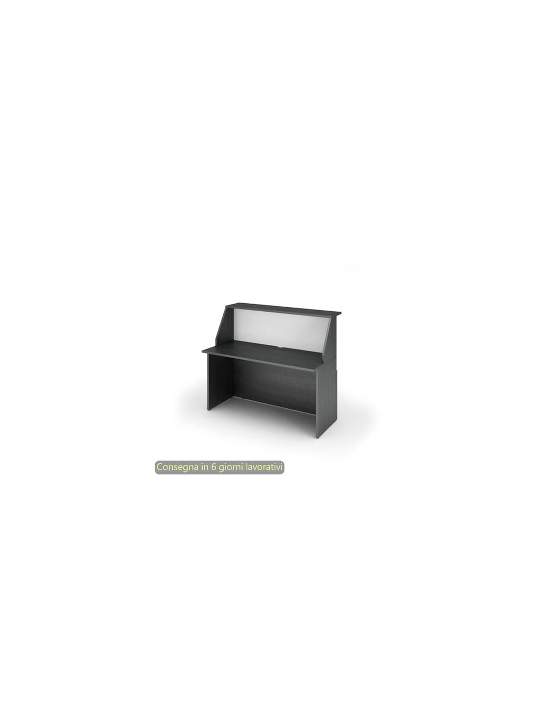 Disegnato pensando all’utilizzatore moderno, il bancone è completo di asola passacavi ed i sopralzi sono posti ad un’altezza di 117 cm, in modo da permettere il posizionamento di numerosi modelli di monitor di ultima generazione, anche di dimensioni generose, al di sotto di quest’ultimi. Ogni modulo è completo di separatori laterali (profondità 35 cm, spessore 18 mm) per garantire privacy ed isolamento acustico. Dotato di piedini regolabili in altezza. Materiale nobilitato bilaminato melaminico (spessore 18 e 22 mm), finiture antigraffio e antiriflesso. Profondità piani di lavoro 60 cm, profondità mensola sopralzo 30 cm. L’altezza utile fra il piano di lavoro ed il top sopralzo è di 42,8 cm.