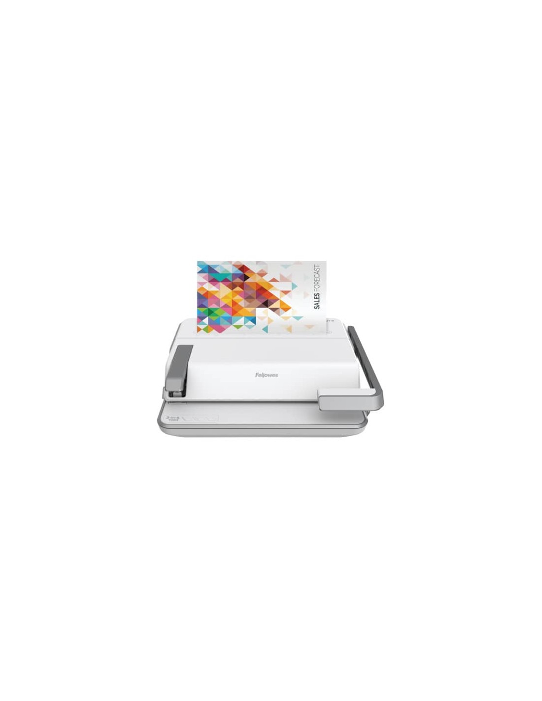Rilega documenti fino a 300 fogli con dorsi plastici (perforazione 20 fogli), misuratore brevettato per selezionare il dorso giusto in base al documento. Pinza senza sforzo fino a 30 fogli, con caricamento verticale veloce, e perfora fino a 30 fogli in 2/4 fori (con selettore di modo di perforazione).