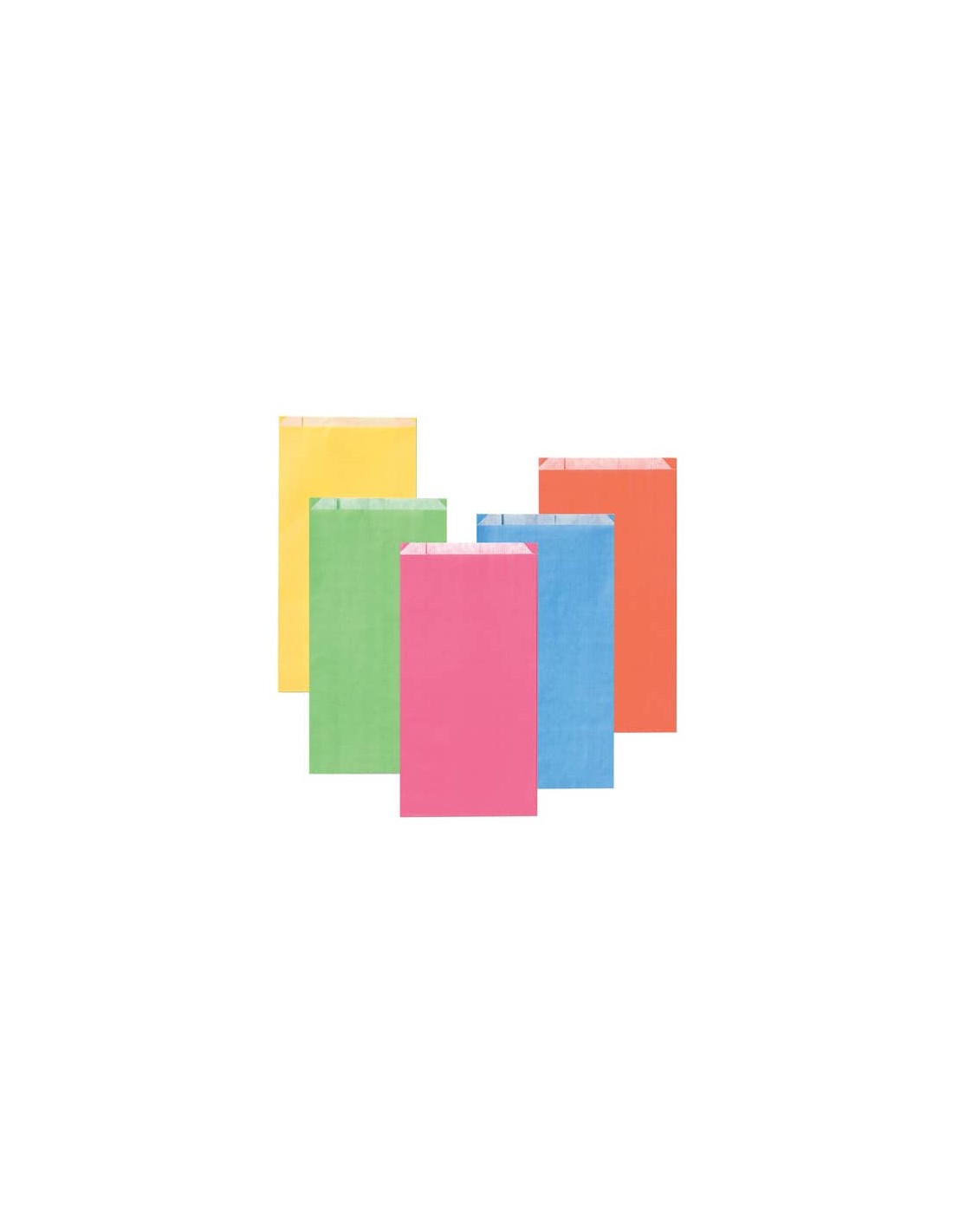 Sacchetti in carta Multicolor kraft avana sealing /kraft bianca. Assortimento tinte unite chiaro. Dimensioni: 8x16 + 2,5 cm. Grammatura: 45 gr/mq. Confezione da 100 pz.