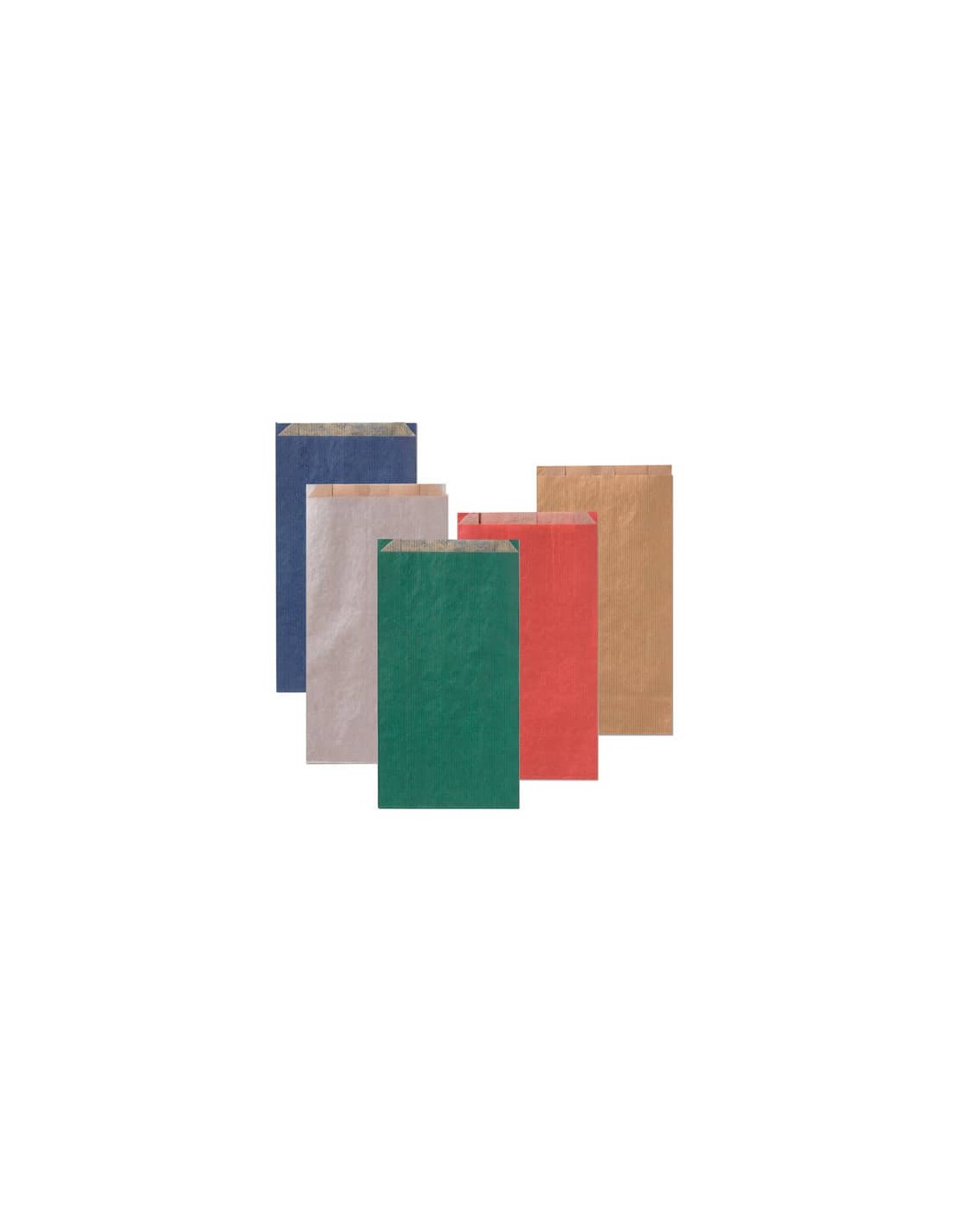 Sacchetti in carta Multicolor kraft avana sealing /kraft bianca. Assortimento tinte unite scure. Dimensioni: 8x16 + 2,5 cm. Grammatura: 45 gr/mq. Confezione da 100 pz.