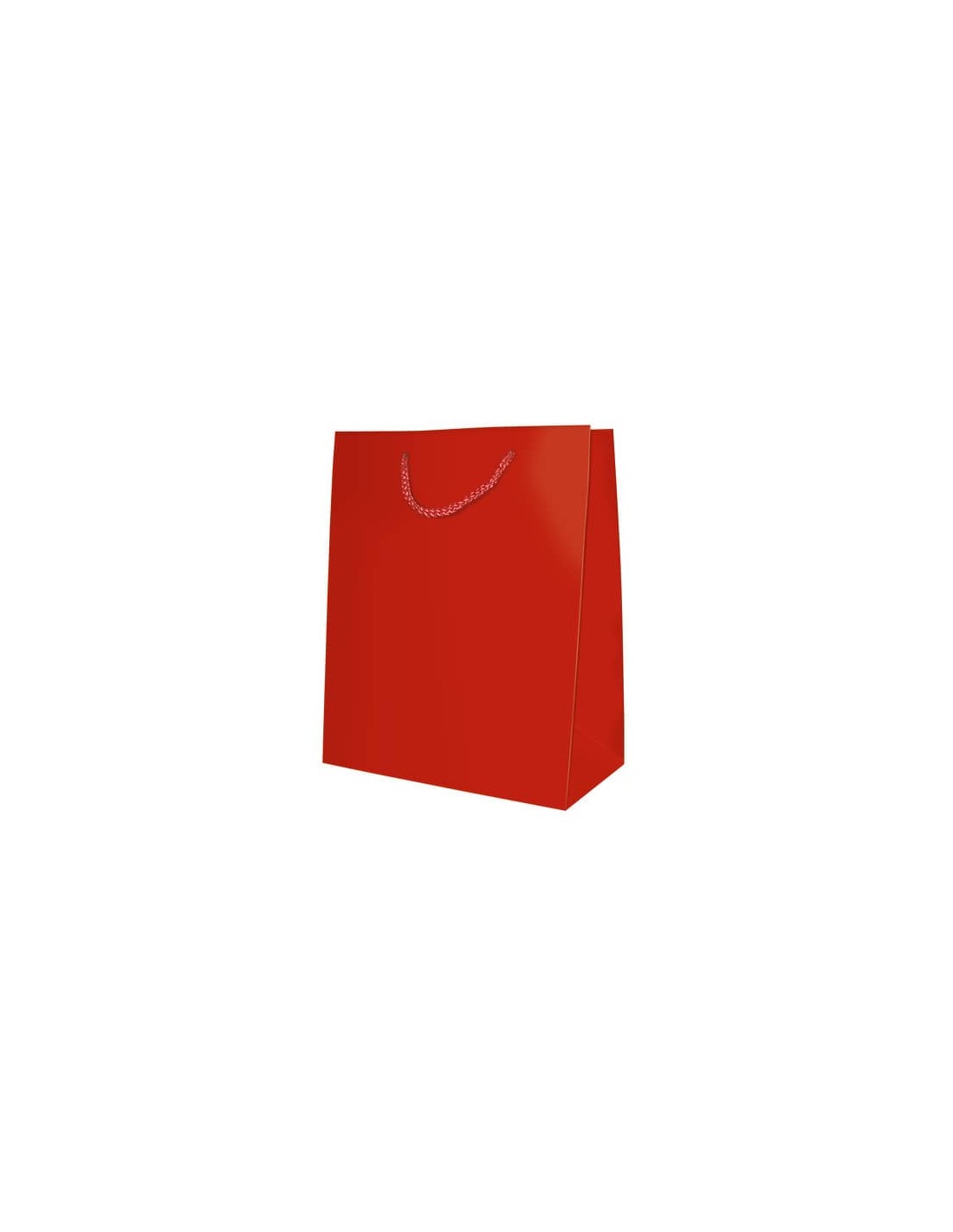 Sacchetti da regalo tinta unita rosso opaco con manici in corda abbianti. Sacchetto perfetto per completare i vostri regali natalizi. Realizzato con materiali di prima scelta. Dimensioni 12x15x5 cm. In carta da 180 gr/mq. In confezione da 6 sacchetti.