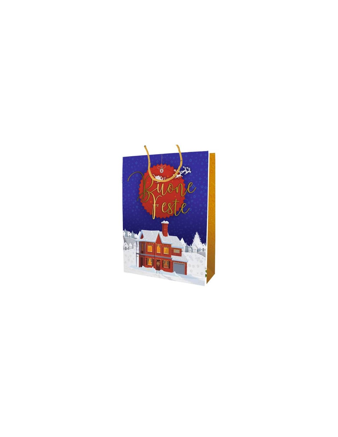 Confezione composta da 6 shopper con fantasia natalizia. Dimensioni: 18 x 23 x 10 cm. Busta con scritta metal, effetti glitter e manici in corda blu. Ideale per creare delle confezioni regalo simpatiche e allegre.
