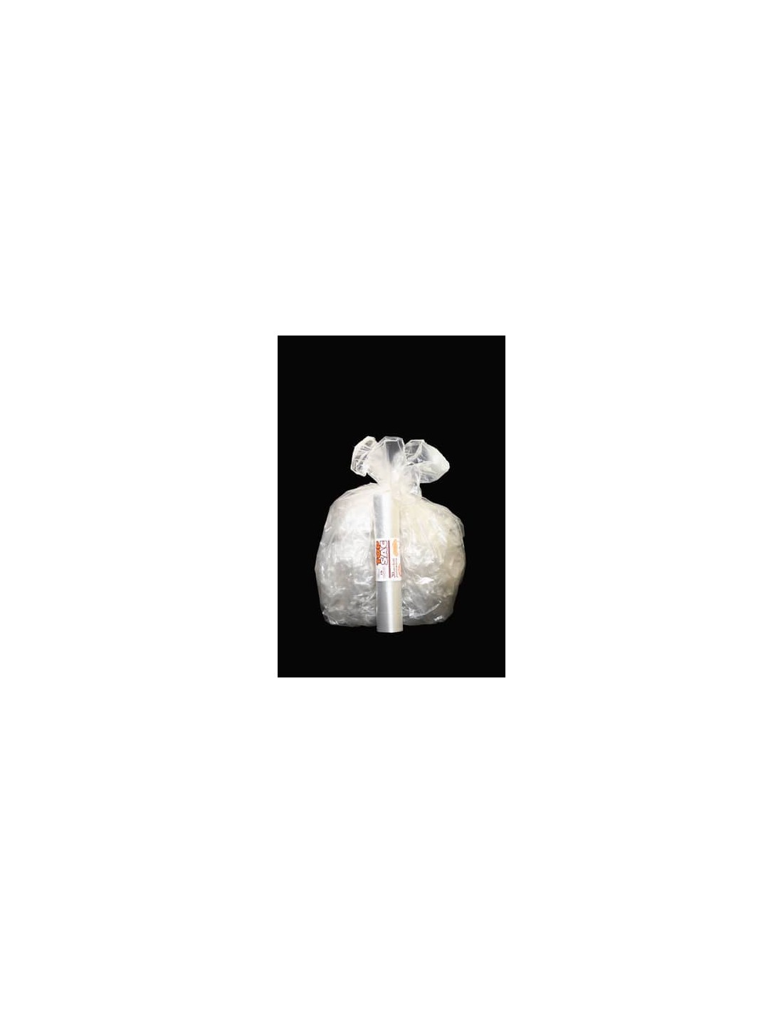 Sacco neutro trasparente in polietilene rigenerato con lacci di chiusura 50x60 cm, 9 gr, spessore 16 my e capacità 27 l, in rotolo da 20 pezzi.