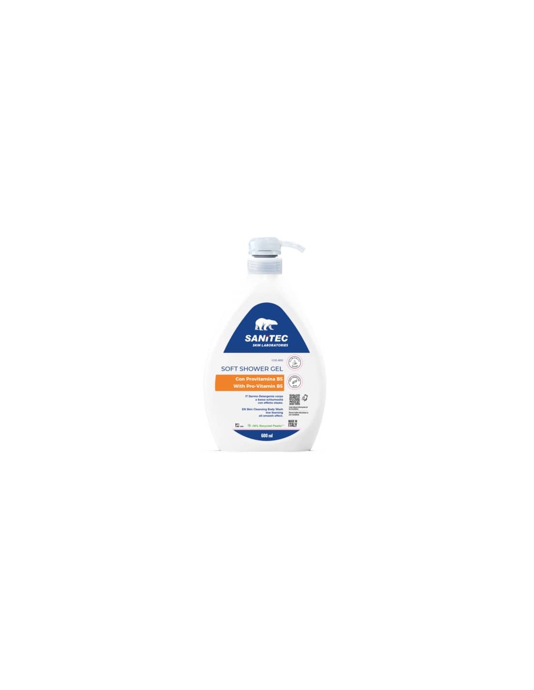 Dermo-Detergente delicato Sanitec Skin Lab per il corpo a bassa schiumosità con effetto oleato. Con Provitamina B5, è ideale per tutti i tipi di pelle in quanto rispetta il naturale film idrolipidico della cute. Testato anche su pelli sensibili. Contenuto: 600 ml.
