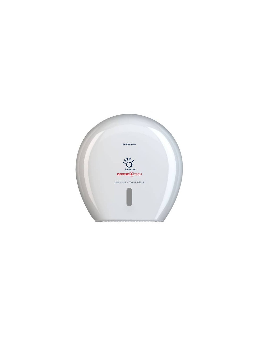Dispenser antibattrico Papernet per carta igienica Mini Jumbo. Un'ampia gamma di dispenser in plastica antibatterica e riciclata dove la semplicità e l'eleganza sono garantiti da un esclusivo design italiano che renderà l'ambiente ordinato e pulito. Colore bianco. Dimensioni: 24,9 x 25,7 x 14,8 cm. Capacità Max Ø 23 cm x h 10 cm.