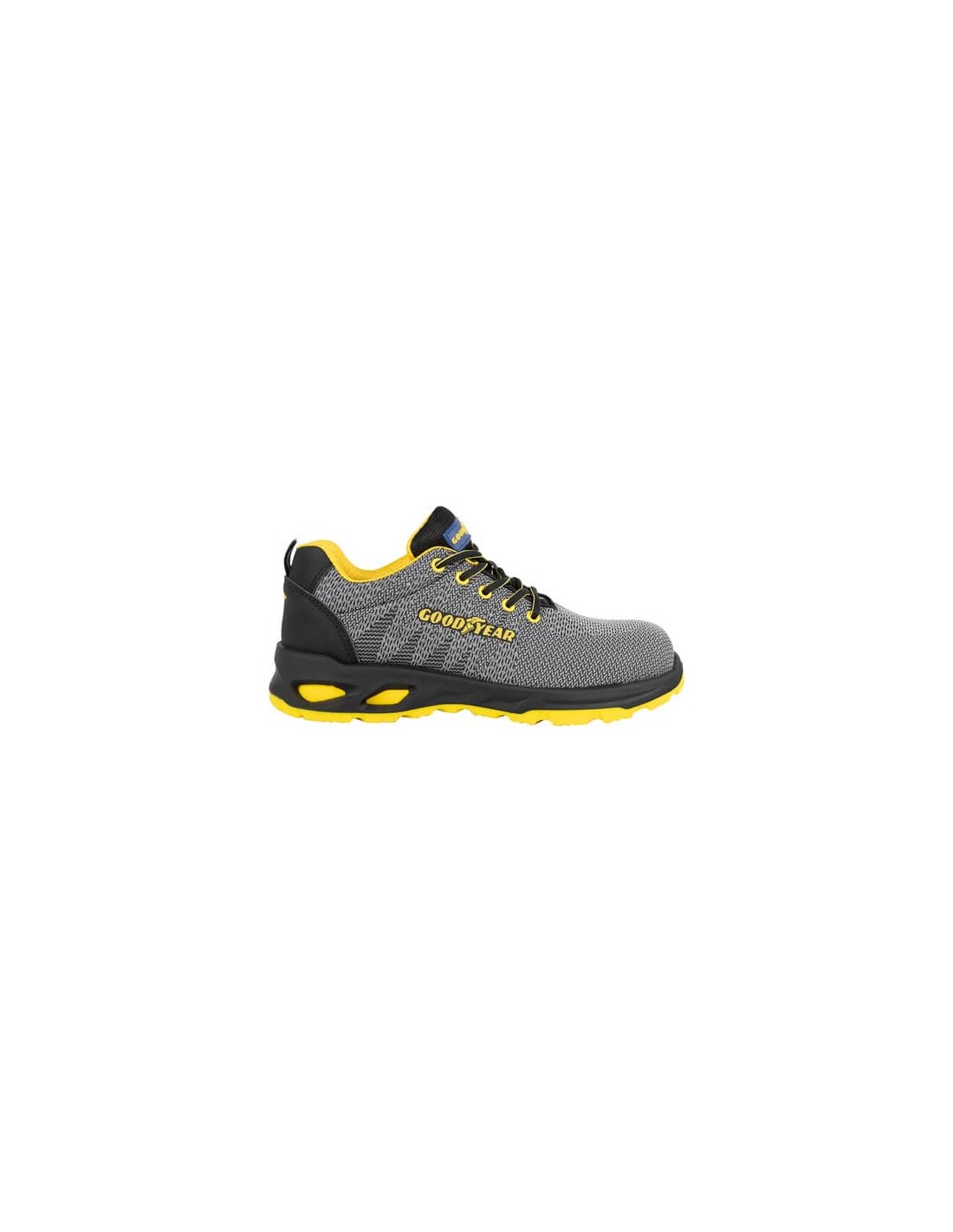 Scarpe antinfortunistiche in tessuto knit GY SUPERLIGHT SP1 SRC. TG.44. Colore: grigio. Metal free. La calzatura più leggera della gamma Goodyear, pensata per alleviare la fatica e rendere più leggera la giornata lavorativa. Tomaia in tessuto Knit resistente ma leggero e traspirante, con rinforzo sul tallone, resistente alle abrasioni, fodera in Air Mesh antibatterico, allacciatura stringata bicolore. Plantare removibile anatomico. Puntale anti-schiacciamento realizzato in materiale Fibra di vetro. Soletta antiperforazione in KevlarLight Composito. Battistrada leggero e flessibile bi-densità ad iniezione PU+PU resistente agli idrocarburi, agli oli minerali, allo scivolamento e dotato di sistema di assorbimento di energia al tallone. Certificazione: EN ISO 20345:2011.