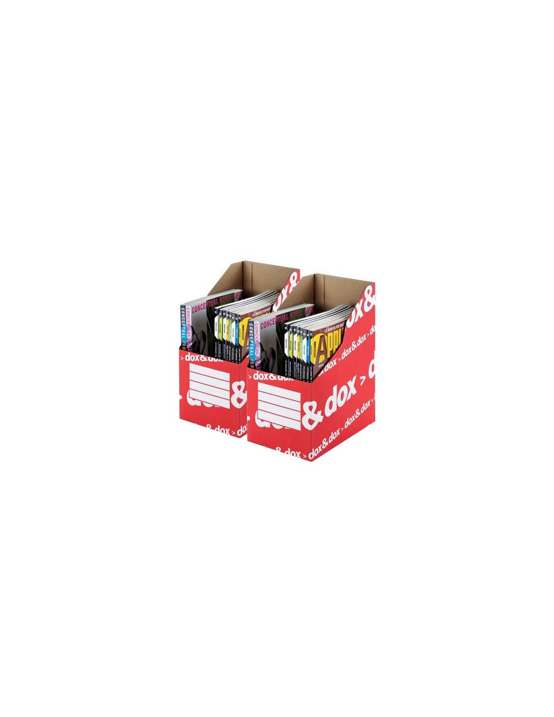Scatola PORTARIVISTE Dox&Dox. L'archivio storico venduto piatto che si monta con uno scatto. Tutti i prodotti sono realizzati in robusto cartone stampato e sono dotati di un apposito spazio per la personalizzazione dei contenuti. Pratico contenitore portariviste, cataloghi e fascicoli anche voluminosi. Capienza raddoppiata rispetto alle dimensioni classiche e spazio per la personalizzazione del contenuto da entrambi i lati. Colore: rosso. Formato 17,5x35x26 cm. Colore rosso/bianco. Fornito smontato.