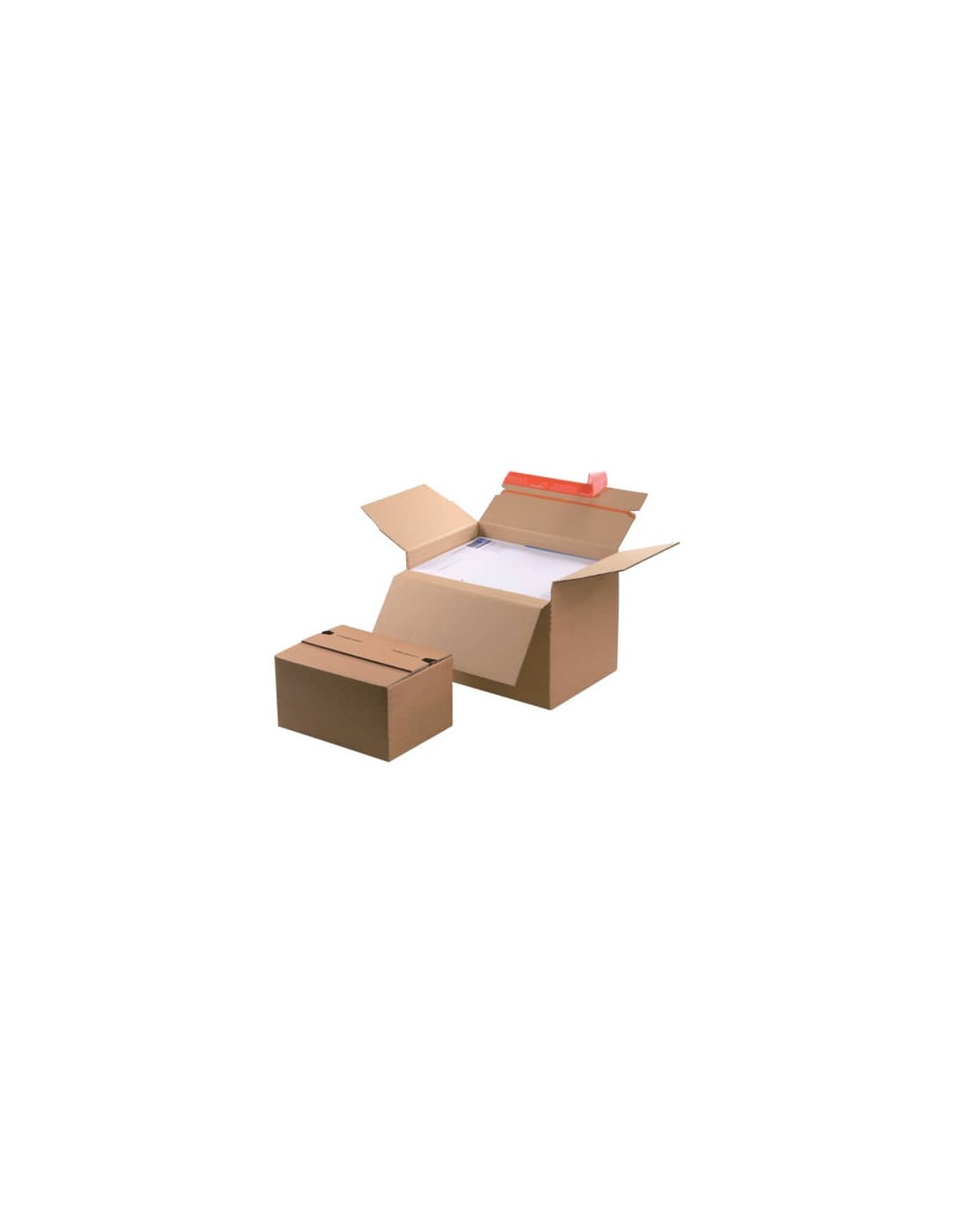 Scatola americana, altezza regolabile. Imballo veloce e razionale per cataloghi, archiviazione e spedizioni. Scanalature per modulare l'altezza. Automontante. Misure esterne: 238 × 170 × 60-130.