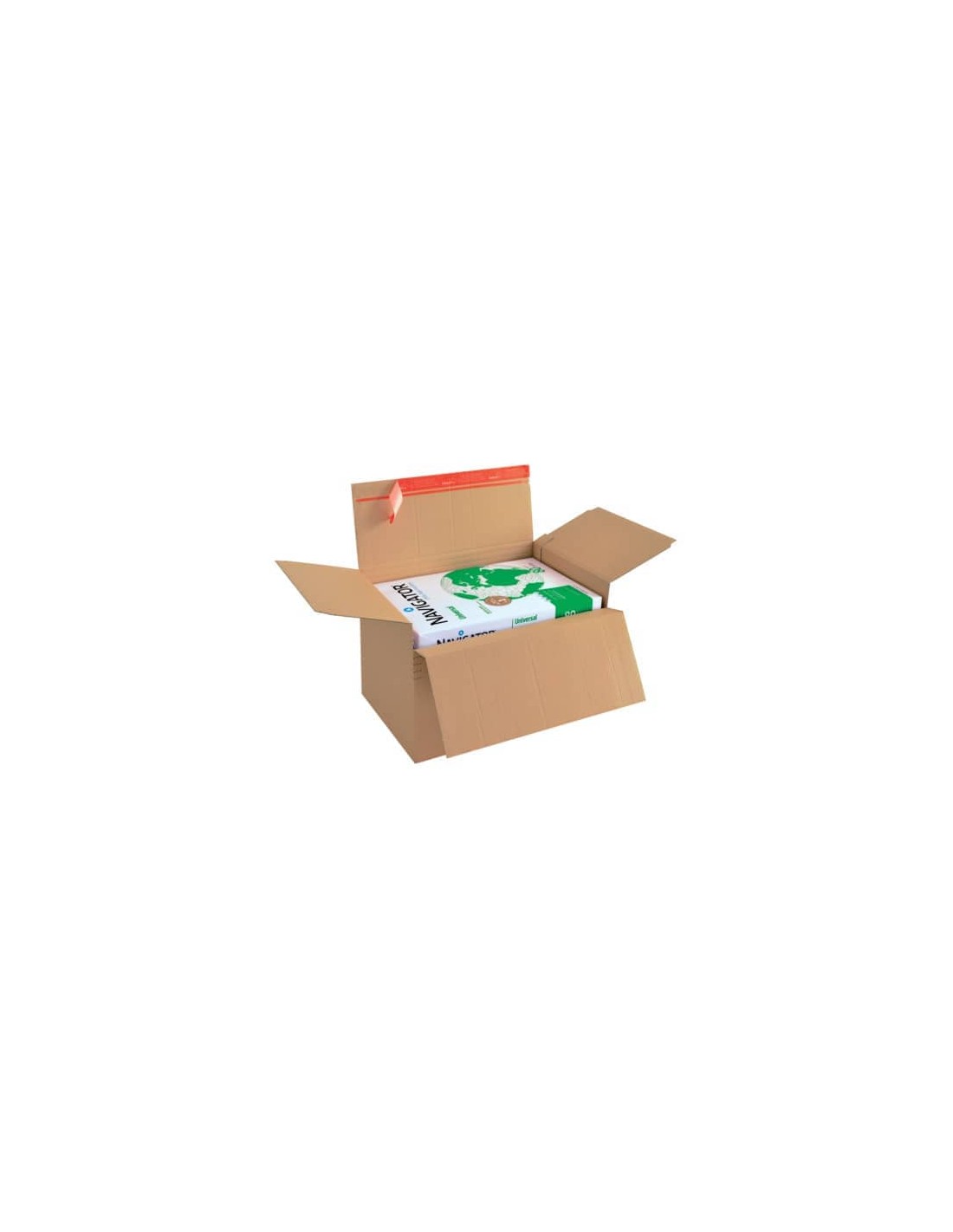Scatola americana, altezza regolabile. Imballo veloce e razionale per cataloghi, archiviazione e spedizioni. Scanalature per modulare l'altezza. Automontante. Misure esterne: 450 × 325 × 190-310.