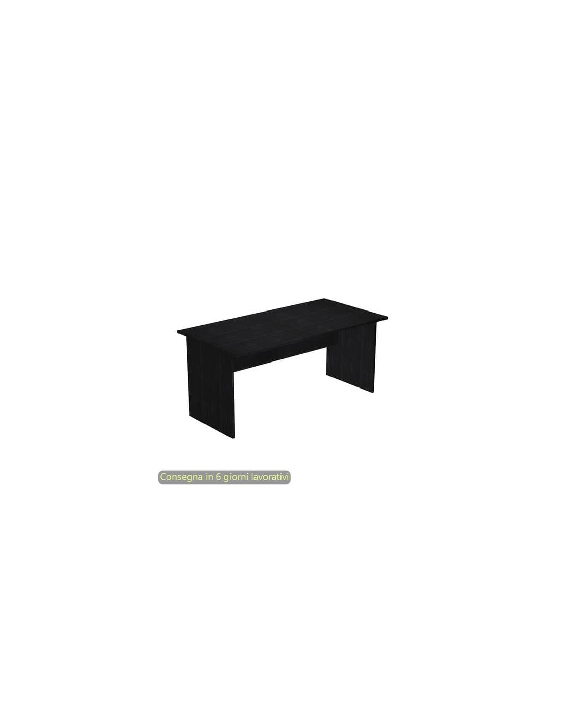 Dimensioni 140x80xH.72 cm, finitura piano e fianchi di colore nero venato frassino. Peso totale imballi 40 kg.