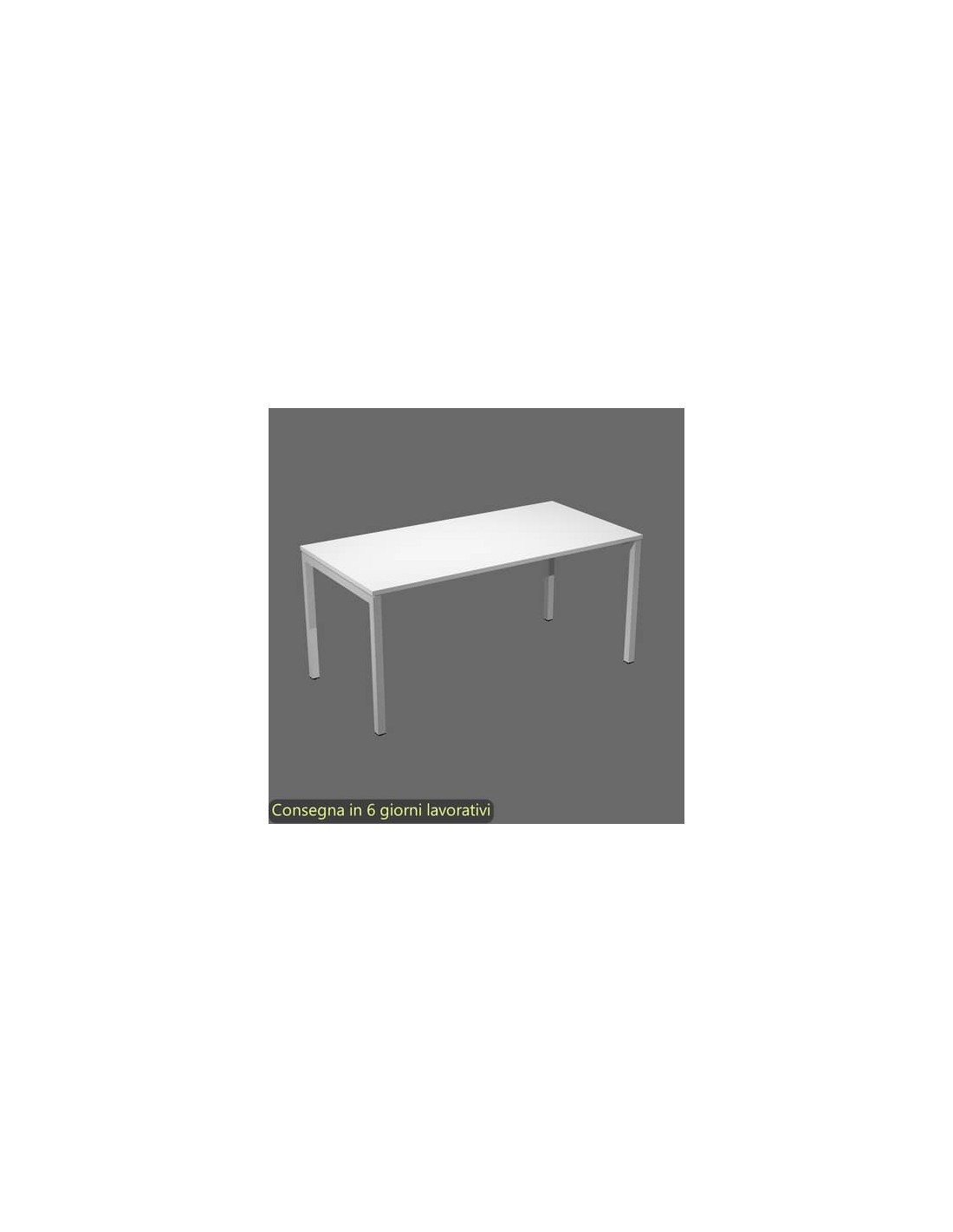 Realizzata in materiale bilaminato nobilitato melaminico, con piano di spessore 22 mm, antigraffio e antiriflesso. Bordo dei piani in ABS antishock di 3 mm di spessore, antiurto e senza spigoli vivi. Gambe a sezione quadrata 40x40 mm, in metallo verniciato a polveri epossidiche di colore grigio alluminio, complete di piedini regolabili in altezza. Le gambe sono unite da una traversa in metallo centrale rispetto al piano. Non essendoci quindi gambe centrali c’è più libertà di movimento