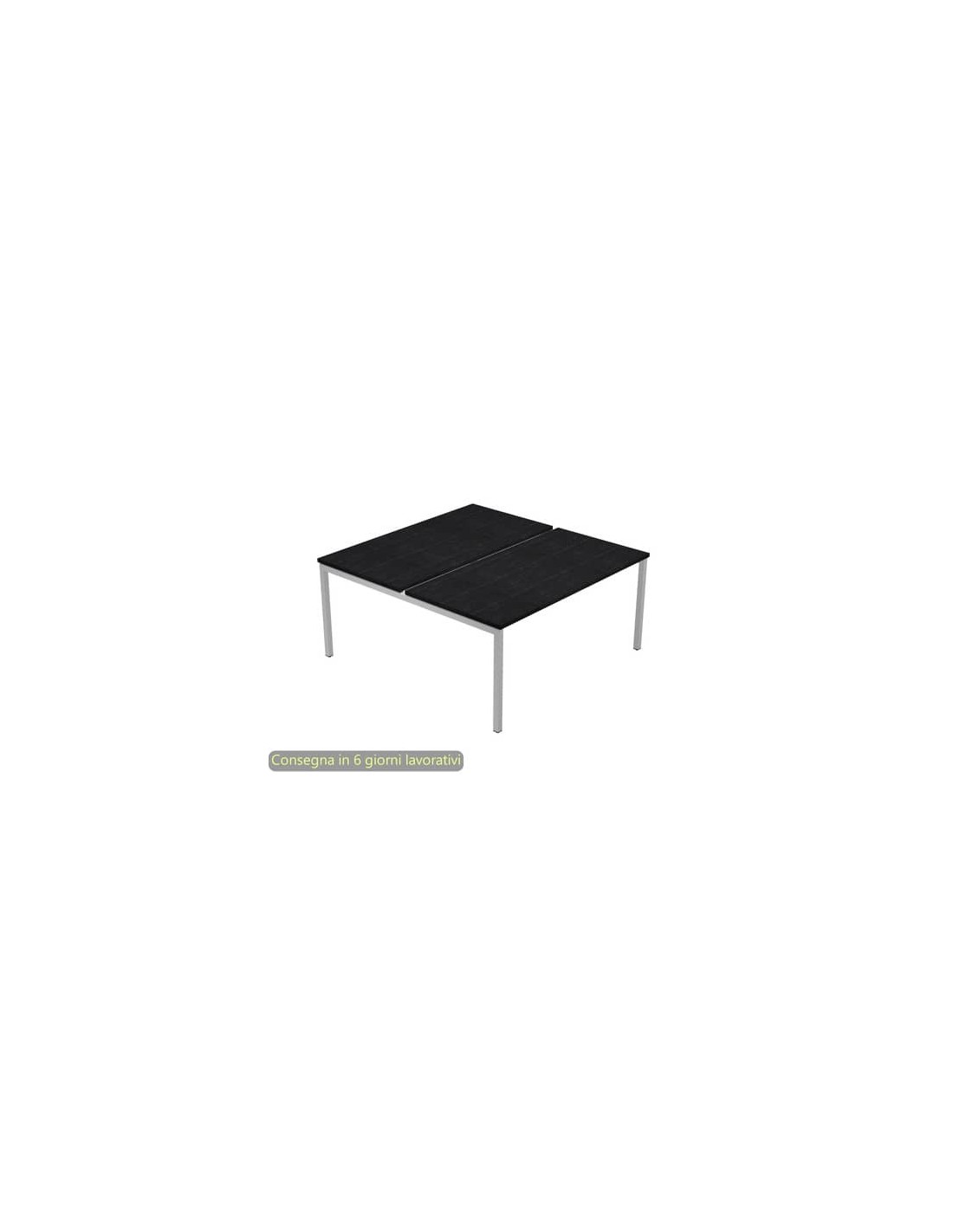 Realizzata in materiale bilaminato nobilitato melaminico, con piano di spessore 22 mm, antigraffio e antiriflesso. Bordo dei piani in ABS antishock di 3 mm di spessore, antiurto e senza spigoli vivi. Gambe a sezione quadrata 40x40 mm, in metallo verniciato a polveri epossidiche di colore grigio alluminio, complete di piedini regolabili in altezza. Le gambe sono unite da una traversa in metallo centrale rispetto al piano. Non essendoci quindi gambe centrali c’è più libertà di movimento