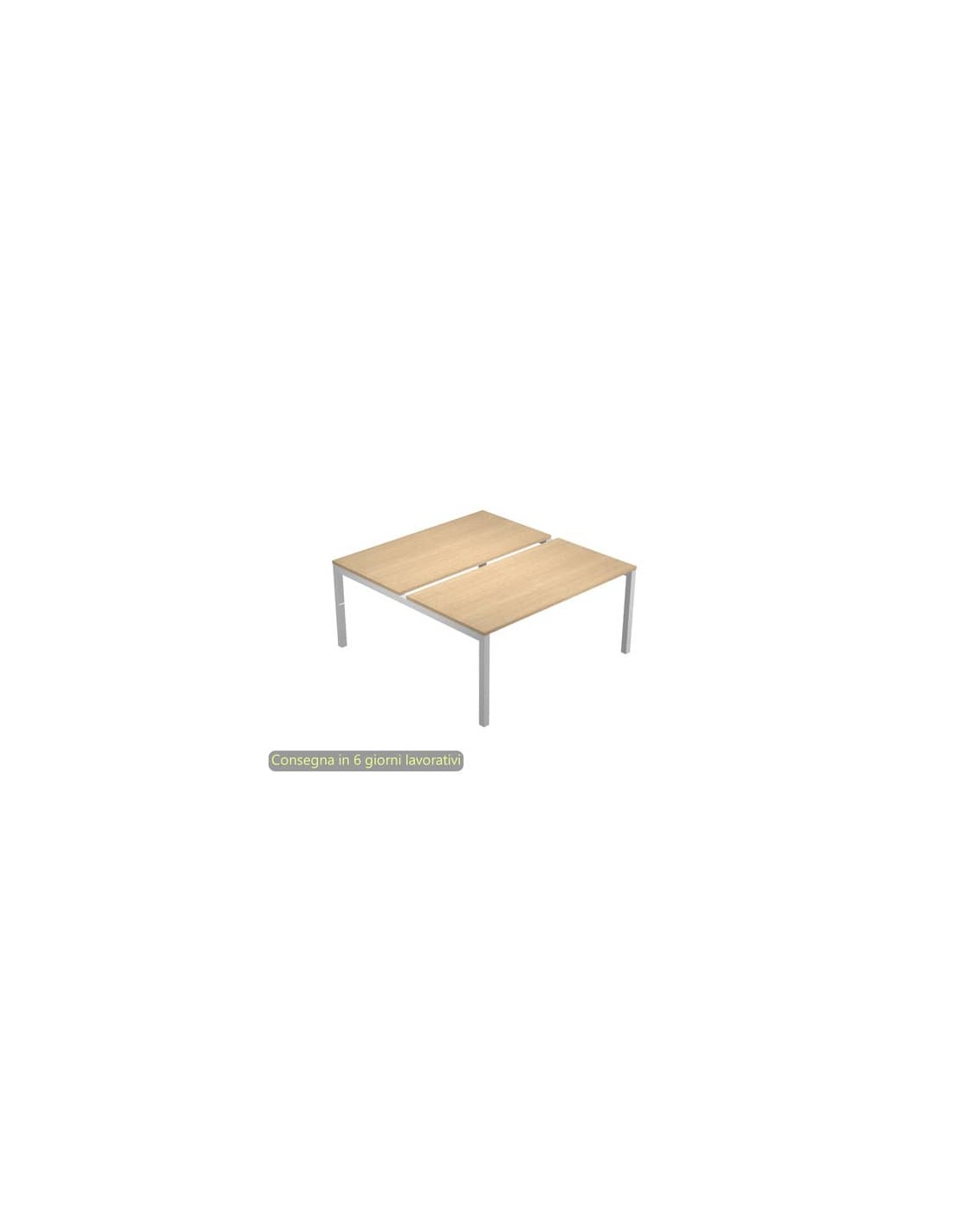Scrivania Bench doppia postazione di lavoro Bridge, senza pannello divisorio, con robuste gambe a ponte in metallo a sezione quadrata. Bridge, una linea che rappresenta la soluzione ideale per allestire ambienti di lavoro open-space con postazioni di lavoro multiple caratterizzate da un design pulito e minimale, robuste e con specifiche tecniche proprie di prodotti di fascia alta. Design e produzione Made in Italy sono garanzia di qualità ed affidabilità.