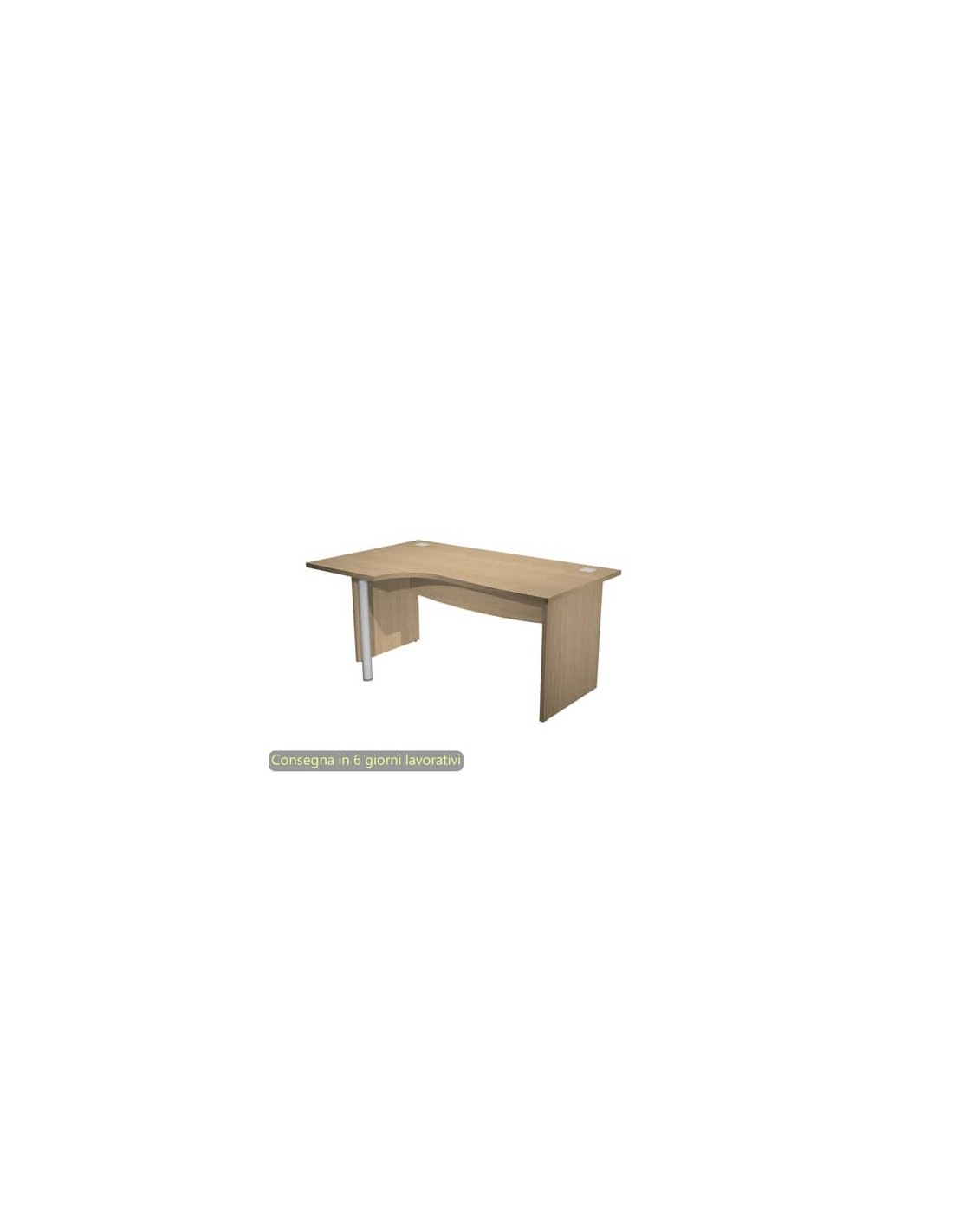 Realizzata in materiale bilaminato nobilitato melaminico, con piano di spessore 25 mm, antigraffio e antiriflesso, con controventatura strutturale in melaminico “Modesty Panel”. Bordo dei piani in ABS di 2 mm di spessore, antiurto e senza spigoli vivi. Fianchi in melaminico, con sagomatura lato sinistro con gamba in finitura grigio alluminio. Anelli passacavi sul piano. Piedini regolabili in altezza.