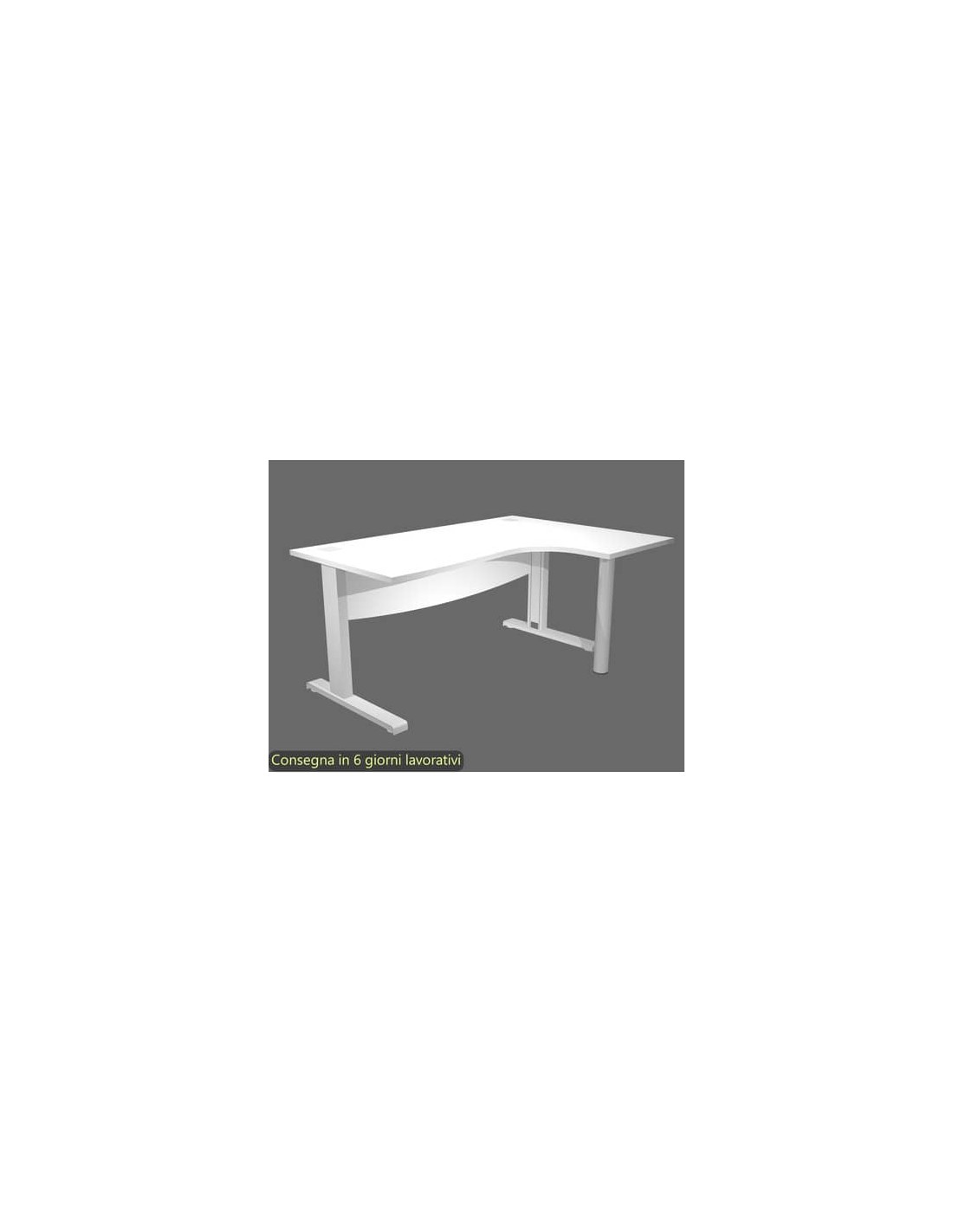 Realizzata in materiale bilaminato nobilitato melaminico, con piano di spessore 25 mm, antigraffio e antiriflesso, con controventatura strutturale in melaminico “Modesty Panel”. Bordo dei piani in ABS di 2 mm di spessore, antiurto e senza spigoli vivi. Fianchi ad L in metallo finitura grigio alluminio ispezionabili e traversa portacavi con anelli sul piano. Piedini regolabili in altezza. Sagomatura lato destro con gamba in finitura grigio alluminio. Anelli passacavi sul piano. Piedini regolabili in altezza.