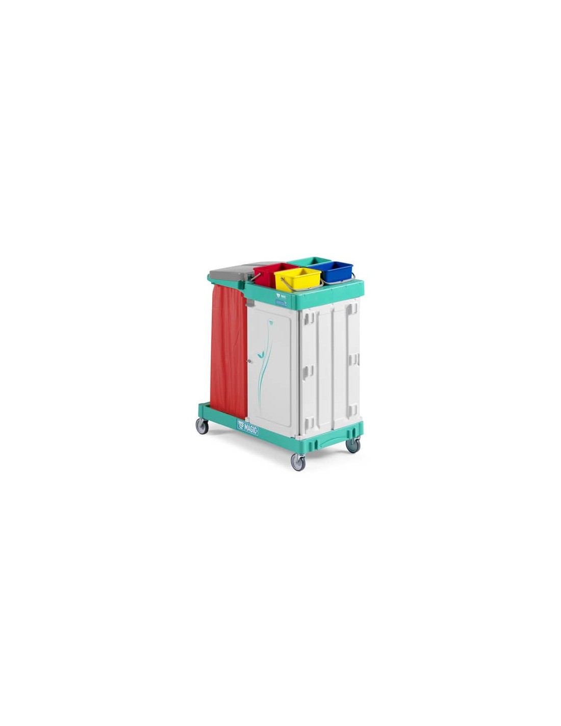 Magic Line 300 Safety TTS è il carrello multiuso a 2 reparti con capacità di raccolta chiusa 120 L e stoccaggio chiuso con cassetto. Ruote 100 mm. Il carrello in polipropilene è modulare e accessoriabile per rispondere ad ogni esigenza di pulizia. Ideale per il trasporto di attrezzatura. I montanti in plastica separano nettamente i moduli del carrello evitando contaminazioni tra la zona di lavaggio, stoccaggio e raccolta rifiuti. Equipaggiato con secchielli 4 L di colore diverso. Dimensioni 92 x 55 x 110 cm. Sacco e coperchio non in dotazione.