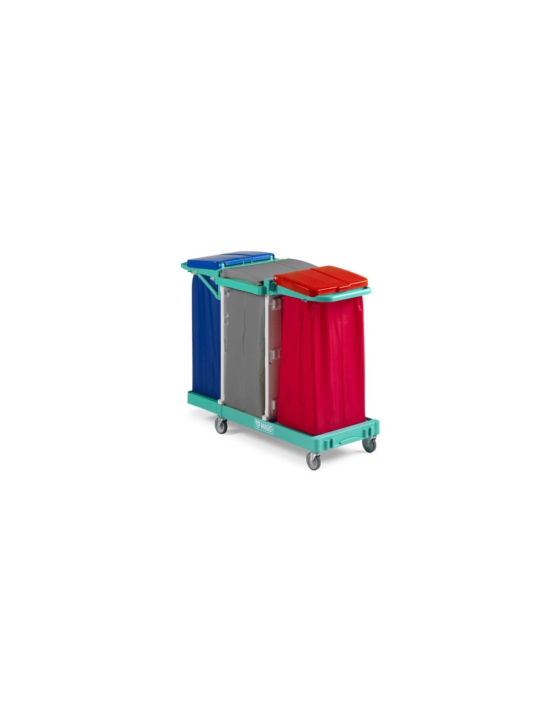 Magic Line 150 Basic è il carrello per gestione rifiuti per raccolta differenziata con ruote 100 mm. Ideale per lo svuotamento cestini in ambienti con problemi di spazio grazie al portasacco compattabile e per creare isole per la raccolta differenziata grazie ai coperchi colorati. La porta frontale permette l'estrazione del sacco senza doverlo sollevare, evitando traumi e affaticamento alla colonna vertebrale. I montanti in plastica separano nettamente i moduli del carrello evitando contaminazioni tra le zone di raccolta. Dimensioni 135 x 58 x 104 cm. Sacchi e coperchi non in dotazione.