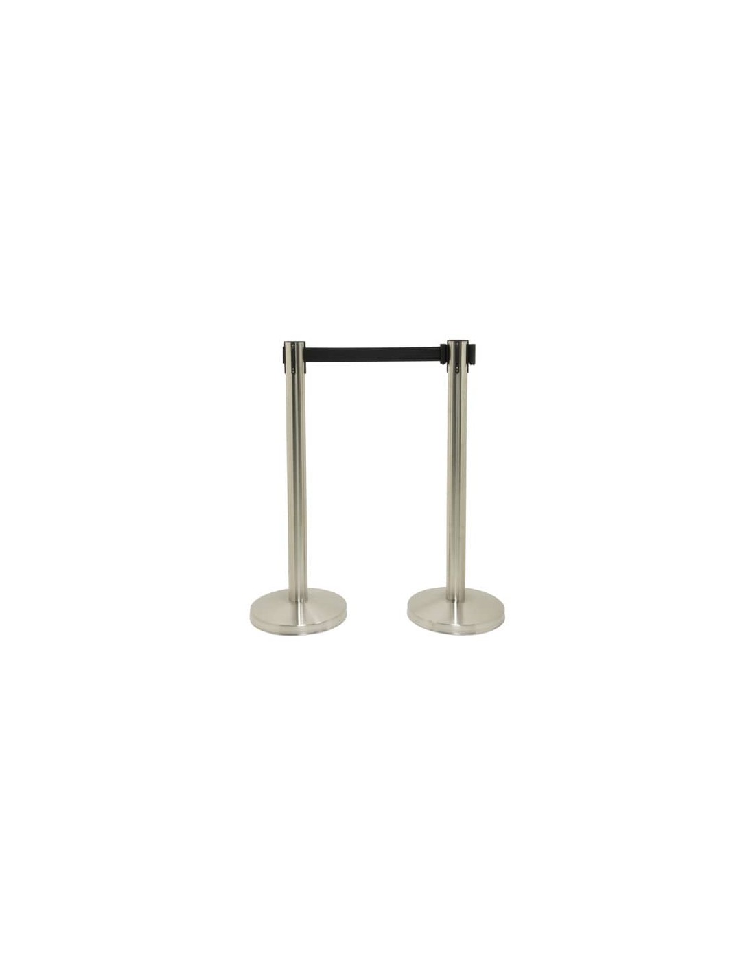 Set di 2 colonne segnapercorso - con nastro retrattile nero di 210 cm. In acciaio inox satinato, 93x33x33 cm, peso 7,9 kg. Ogni colonnina ha 4 diversi punti per l'aggancio del nastro retrattile. adatta sia per uso interno che esterno.