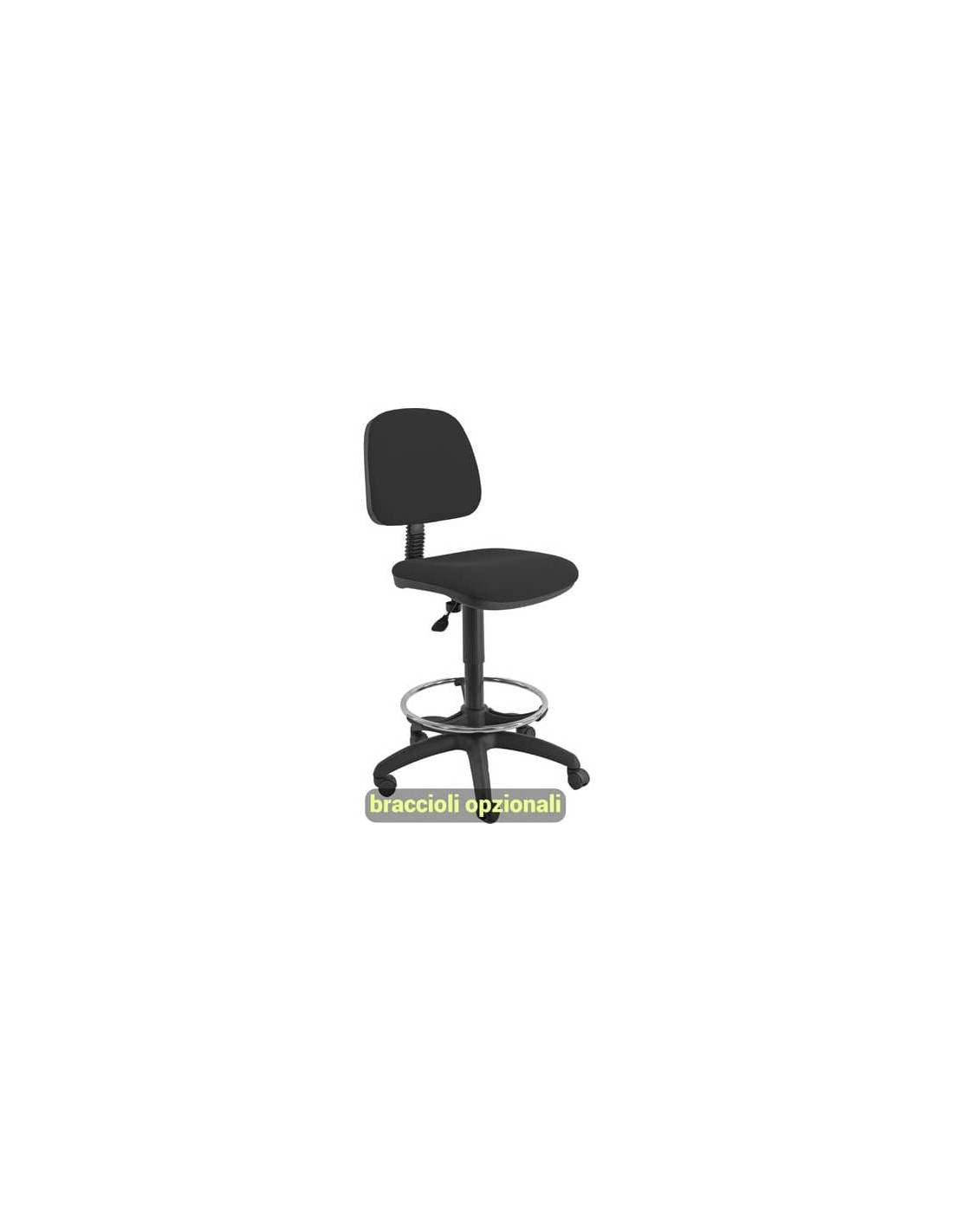 Sgabello tecnico girevole Esos EOE4S. Base in nylon, con poggiapiedi telescopico, schienale regolabile in altezza e profondità, seduta alta con elevazione a gas.