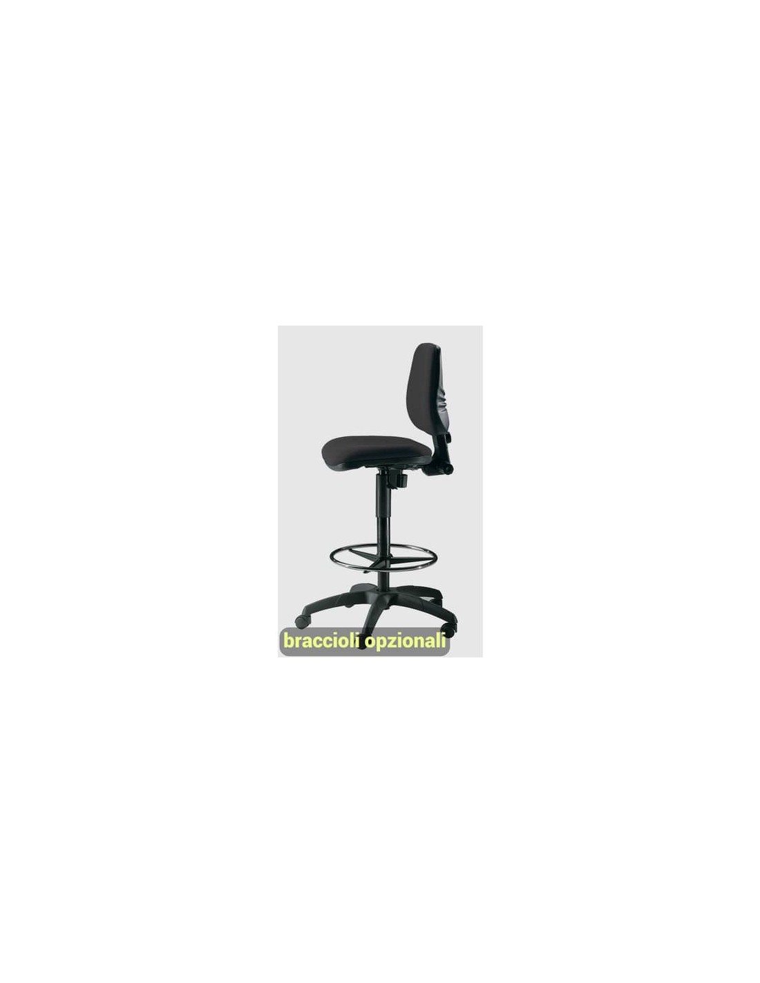 Sgabello tecnico, girevole su 5 ruote, Esos EOE1. Base in nylon, con poggiapiedi telescopico, schienale regolabile in altezza e profondità, seduta con elevazione a gas.