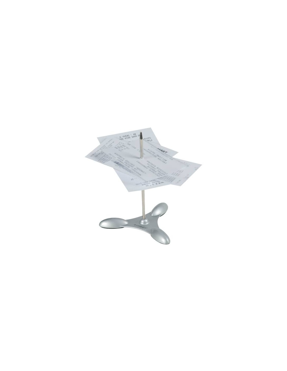 Infilza scontrini in metallo, altezza 11 cm. Base a treppiede con inserti in gomma. Colore argento.