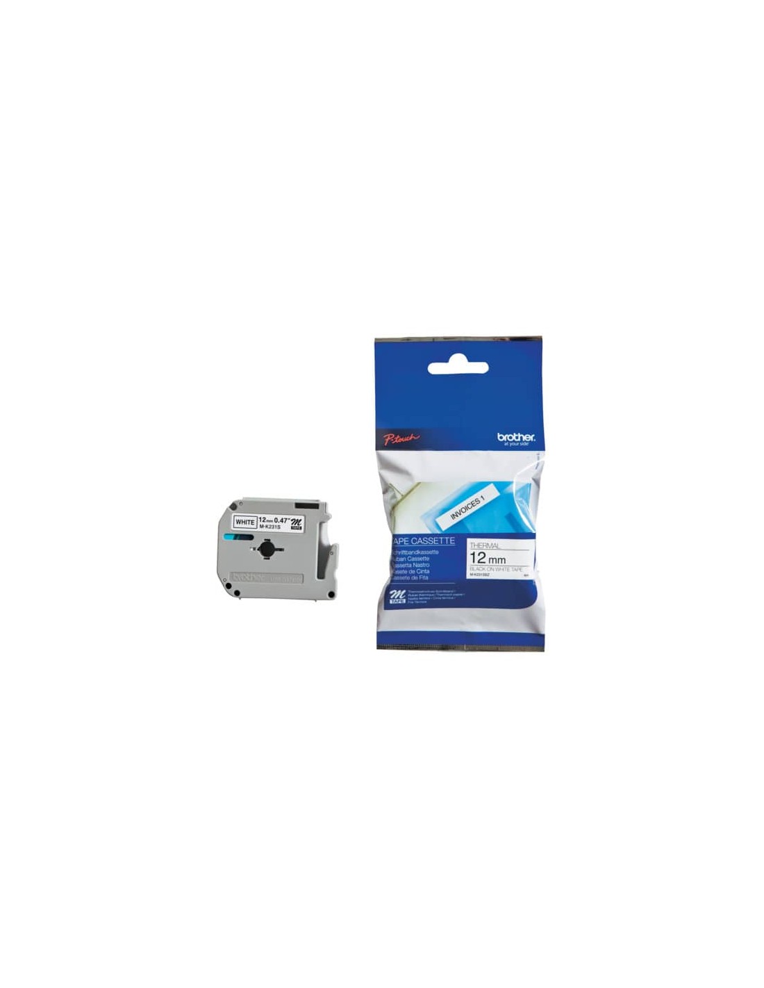 Nastro per etichettarice, formato 12mm x 8mt, colore nero/bianco. Ideali per tutti gli usi, compatibili con tutte le etichettatrici Brother P-touch che riportano il logo M sul coperchio della cassetta.