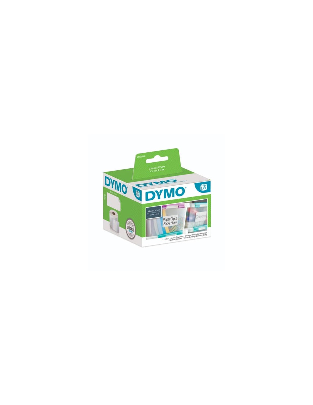 Etichette DYMO LabelWriter in carta multiuso. Le etichette Dymo LabelWriter utilizzano un processo di stampa a trasferimento termico, eliminando la scomodità e i costi di inchiostri, cartucce e toner. Formato 57x32 mm colore bianco adesivo riposizionabile. 1000 etichette x 1 rotolo.
